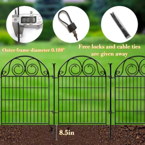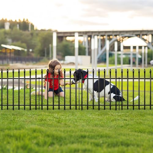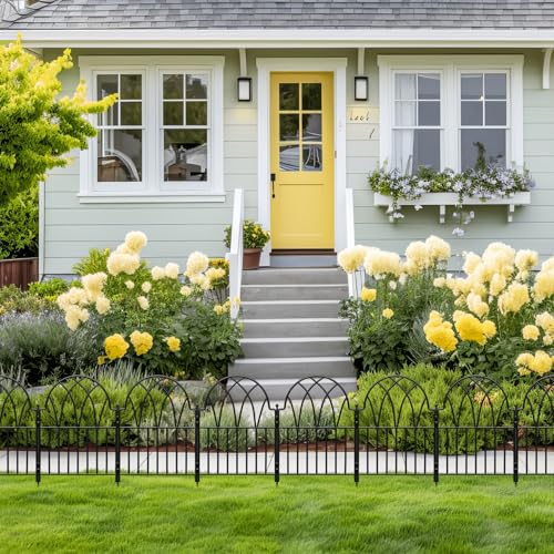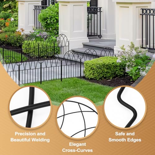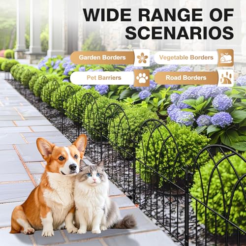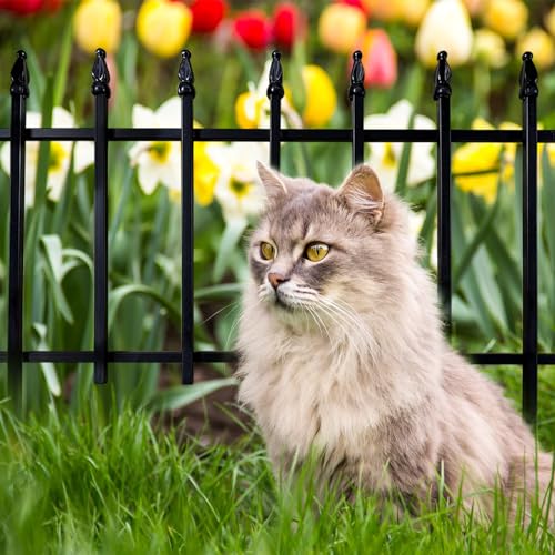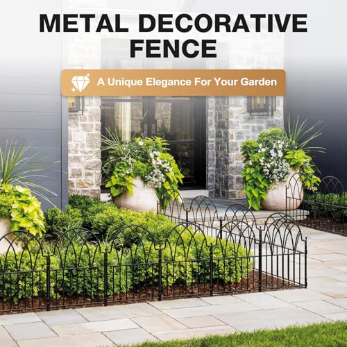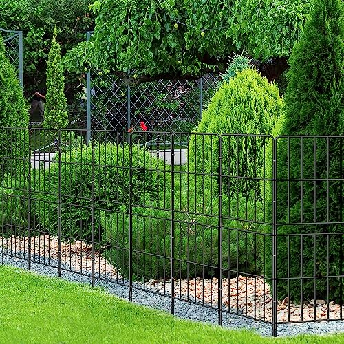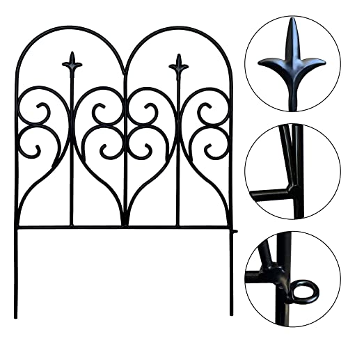 Metal Decorative Garden Fence 22" Wide x 18" High (5 Panels, Total Length 9.17 feet), Metal Border Folding Fence, Landscape Fencing for Flower Bed, Yard, Animal Barrier