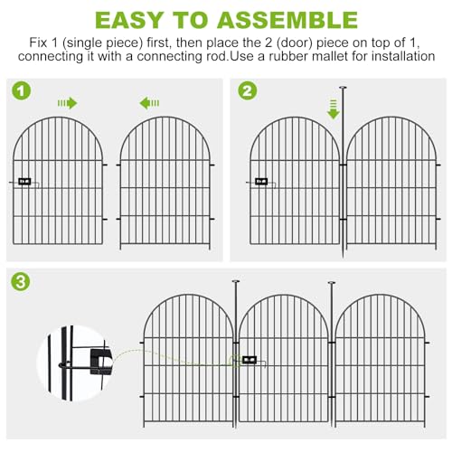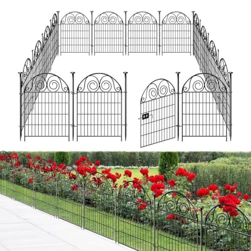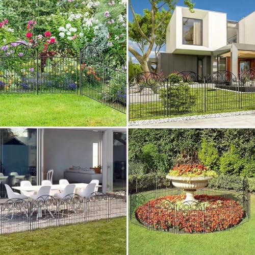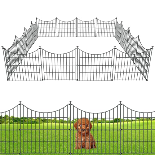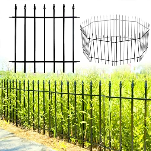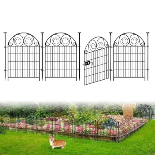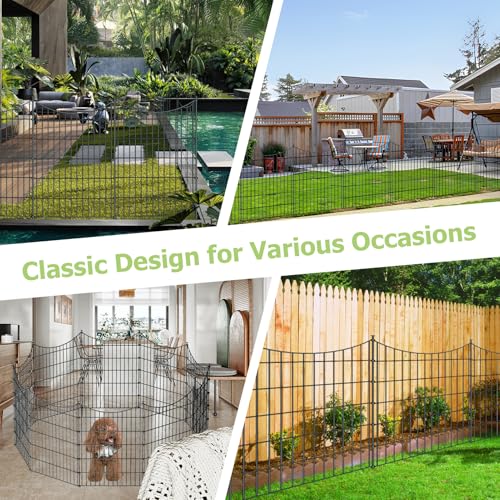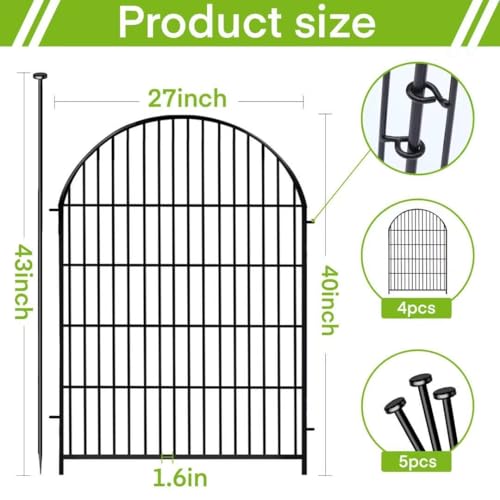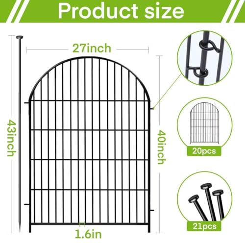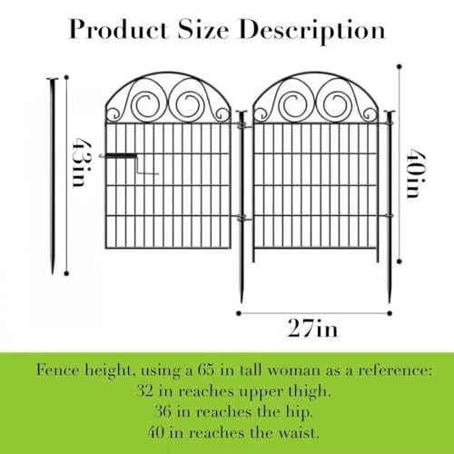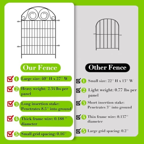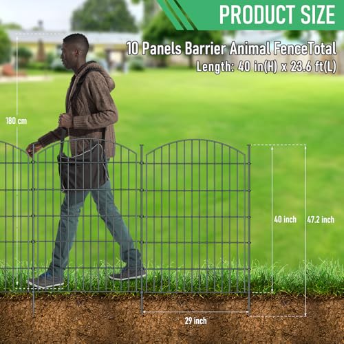 Tall Garden Fence Animal Barrier with Gate, 40 in(H) 12 Panels Garden Fences and Borders for Dogs, Dog Fence Outdoor for Yard, Total Length 26.2 Ft Metal Temporary Fencing│Patented