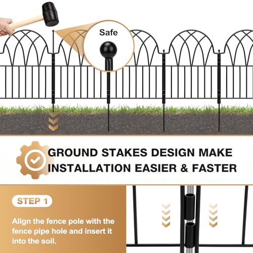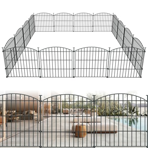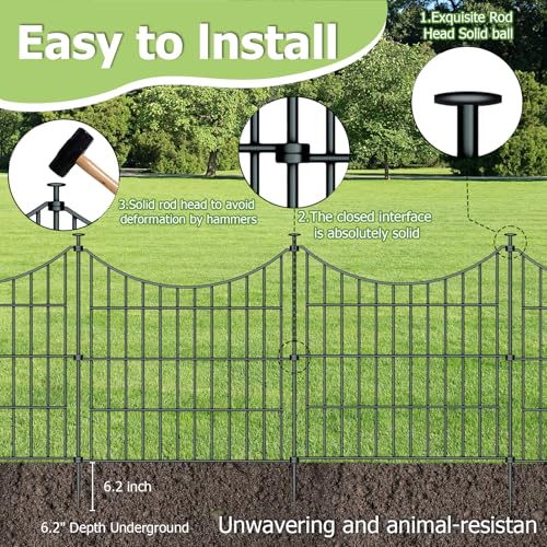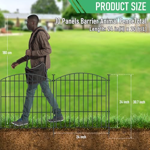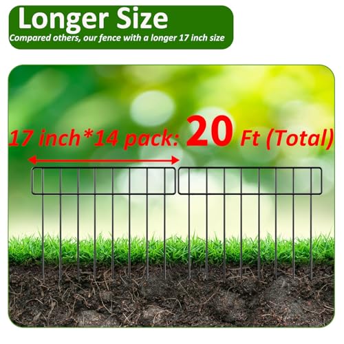 20Ft x 13Inch Animal Barrier, 14 Pack Decorative Garden Fence Panels, Rustproof Metal, No Dig Fence with Ground Stakes for Dog, Rabbit Defense and Outdoor Patio