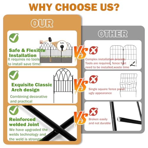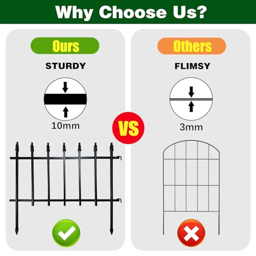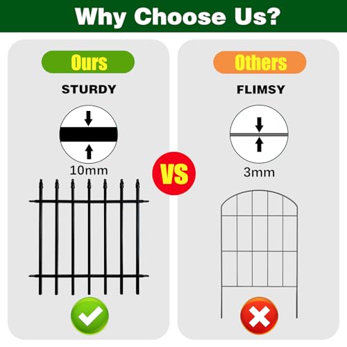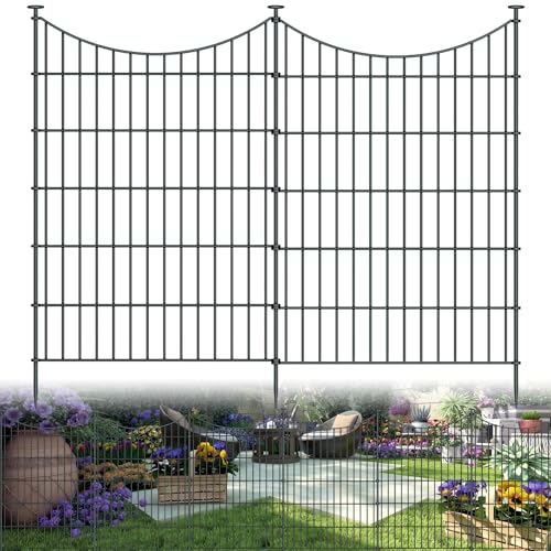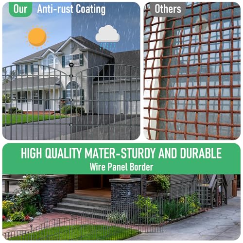 OUSHENG Decorative Garden Fence Fencing 10 Pack, 37.5in (H) x 10ft (L) Rustproof Metal Wire Panel Border Animal Barrier for Dog, Flower Edging for Yard Landscape Patio Outdoor Decor, Square