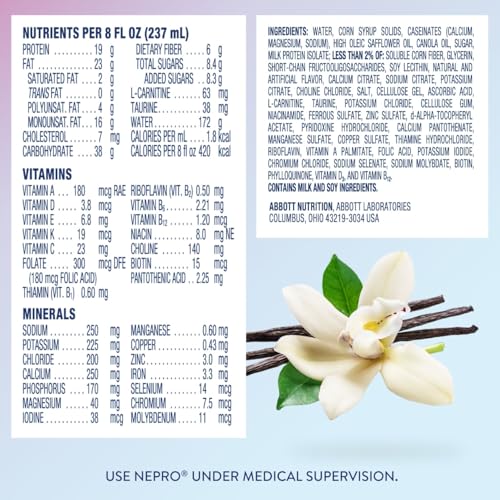 Nepro Nutrition Shake for People on Dialysis, 19g Protein, 420 Calories, Vanilla, 8 fl oz, Pack of 24