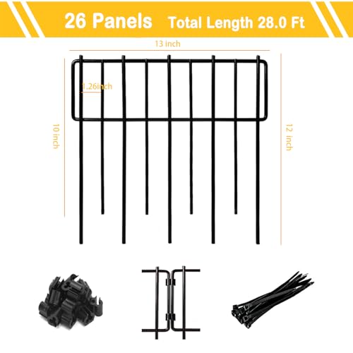 Animal Barrier Fence, 12In(H) x 28.00Ft(L) Upgrade 1.26 in gap Decorative Fences No Dig Fence for Rabbit and Dog, Rustproof Metal Wire Garden Fence Border for Garden Patio Landscaping,26 PCS