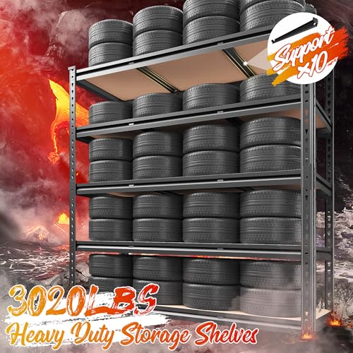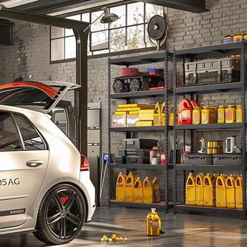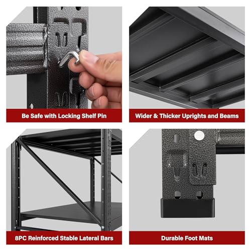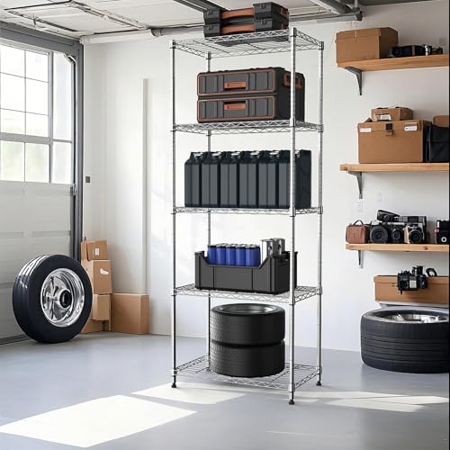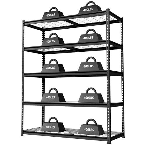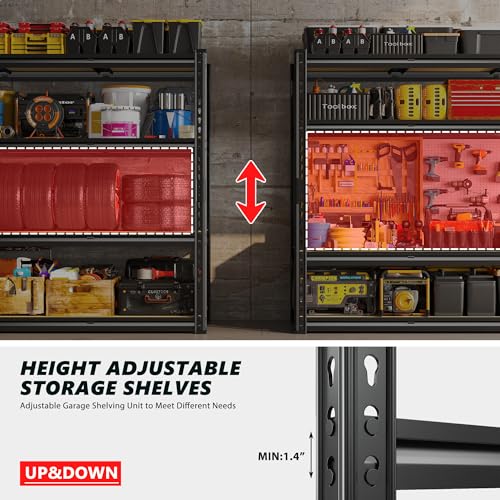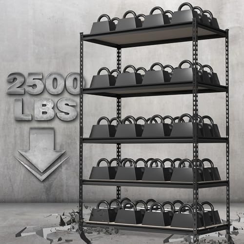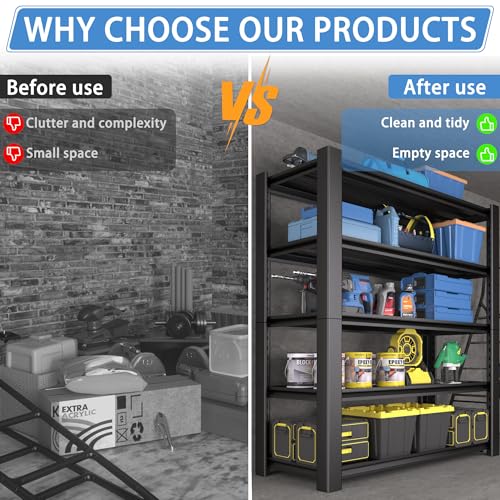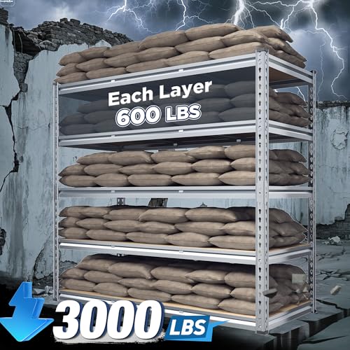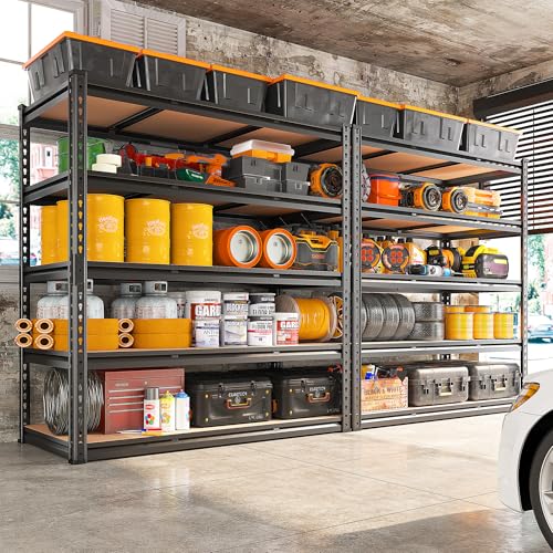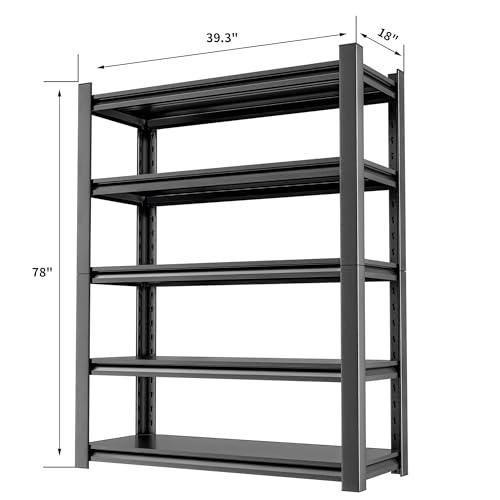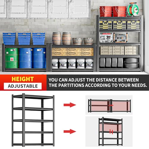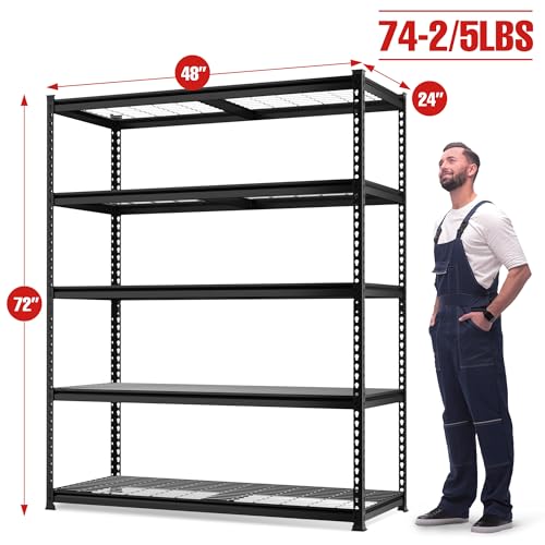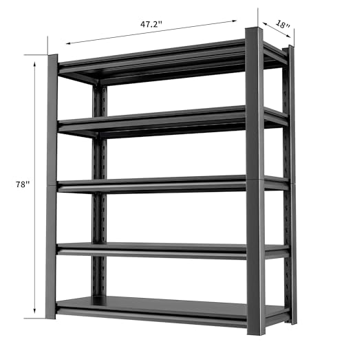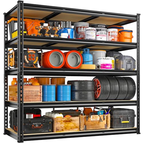 5-Tier Garage Shelving Heavy Duty, 3000 LBS Capacity Metal Storage Rack 76" H x 60" W x 24" D, Adjustable Steel Shelves Unit for Garage, Warehouse, Basement, Pantry, Workshop.1 Pack