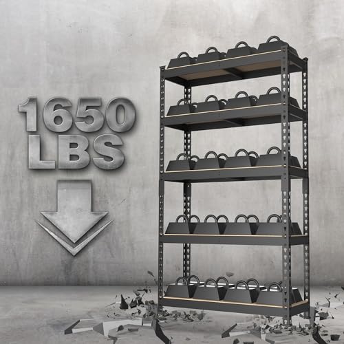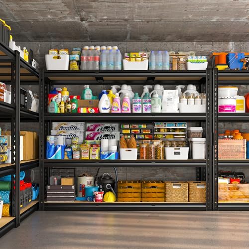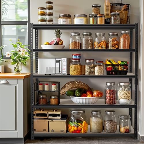 REIBII Storage Shelves 2020LBS Garage Shelving Heavy Duty 5 Tier Metal Shelving Adjustable Metal Shelf 59.8" H Pantry Shelf for Kitchen Warehouse Basement 28" W x 12" D x 59.8" H, Black