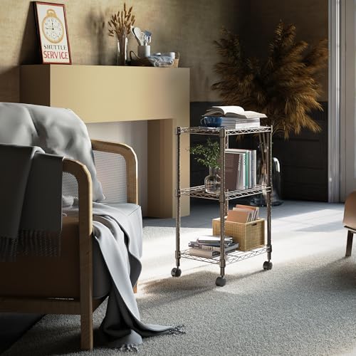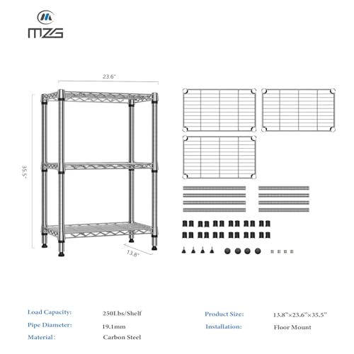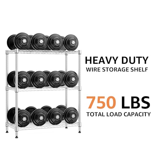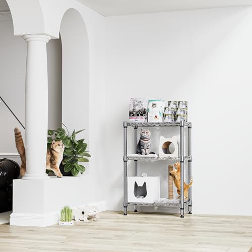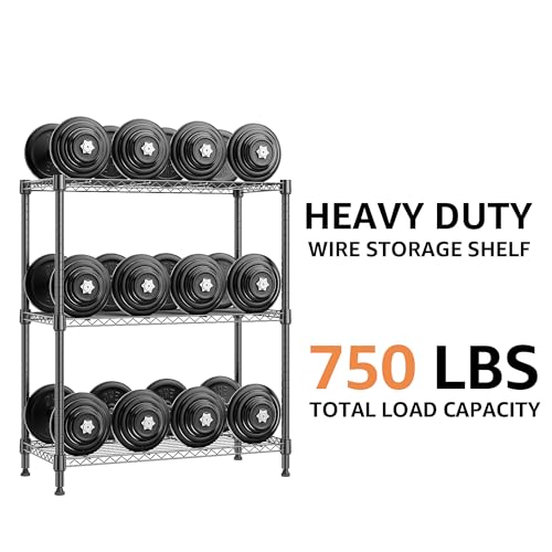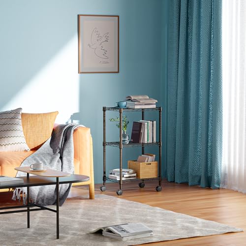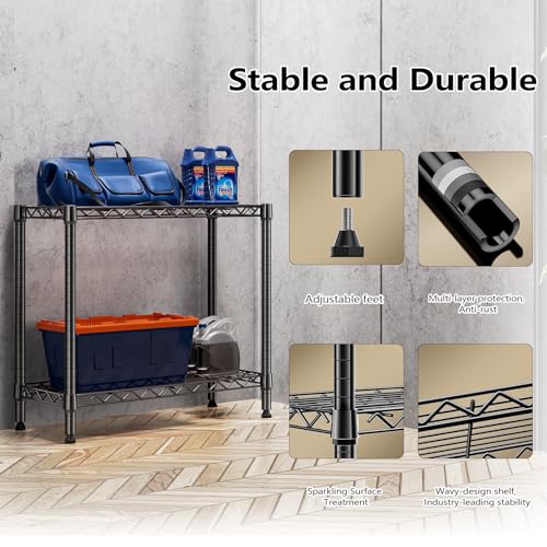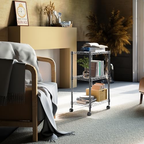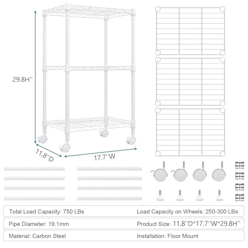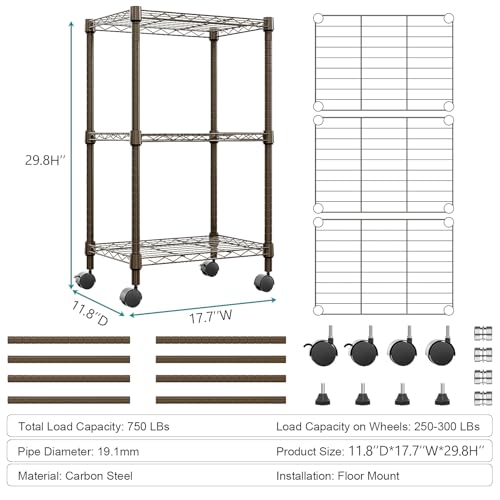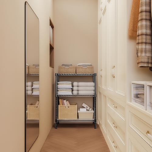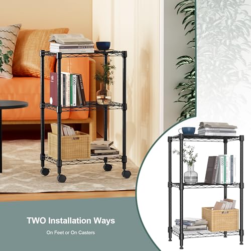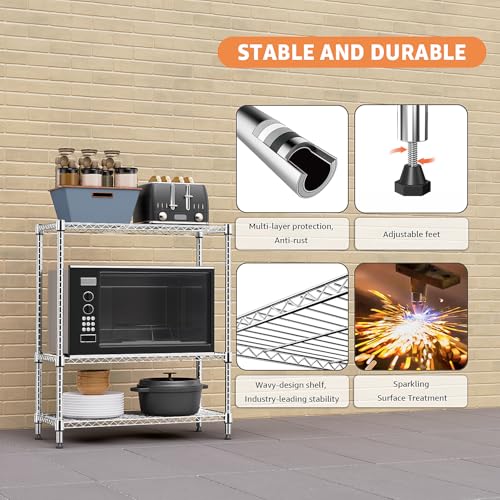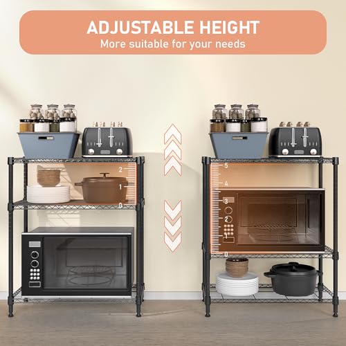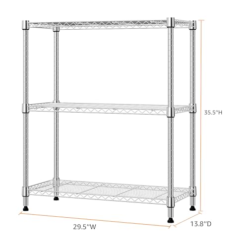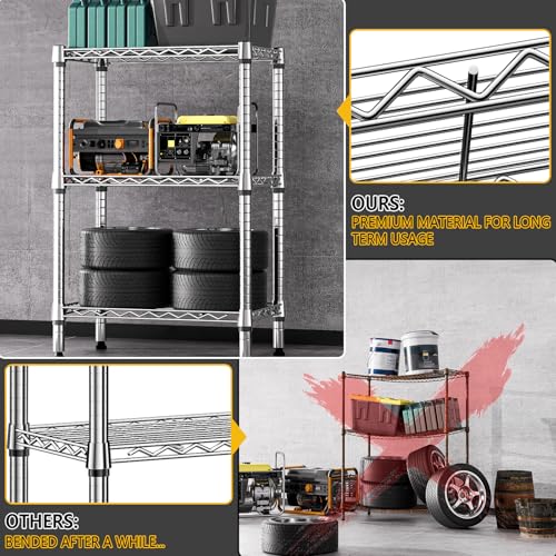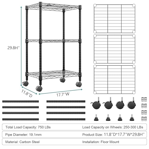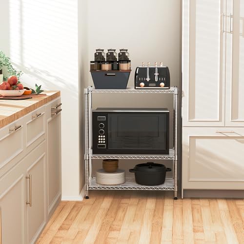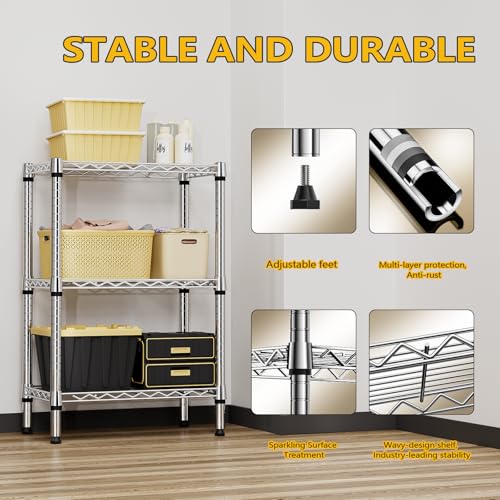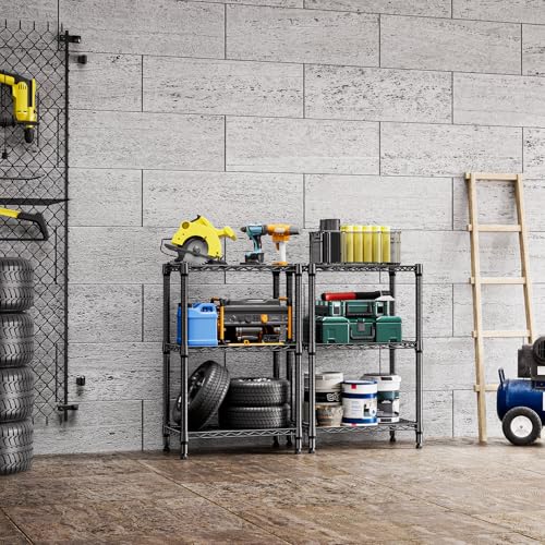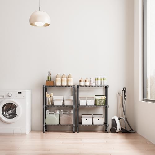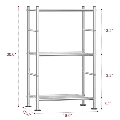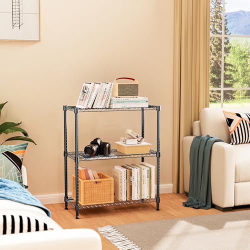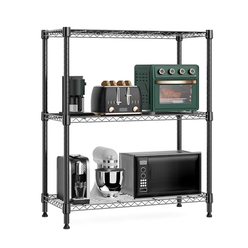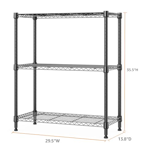 Storage Shelves - 3 Tier Shelf Organizer, Sturdy Metal Garage Shelving with Adjustable Leveling Feet, Space-Saving Shelves Organizer for Pantry, Laundry, Kitchen (18" x 12" x 30", Black)