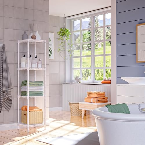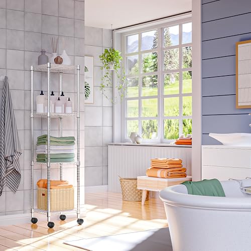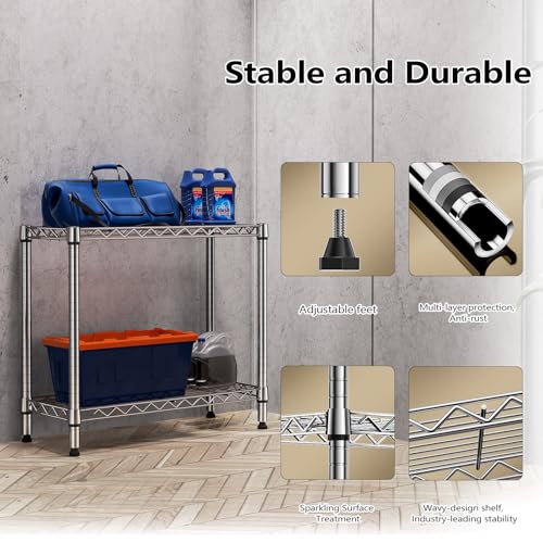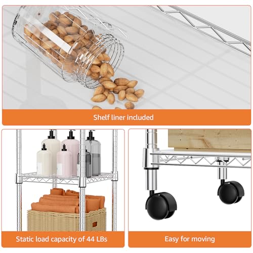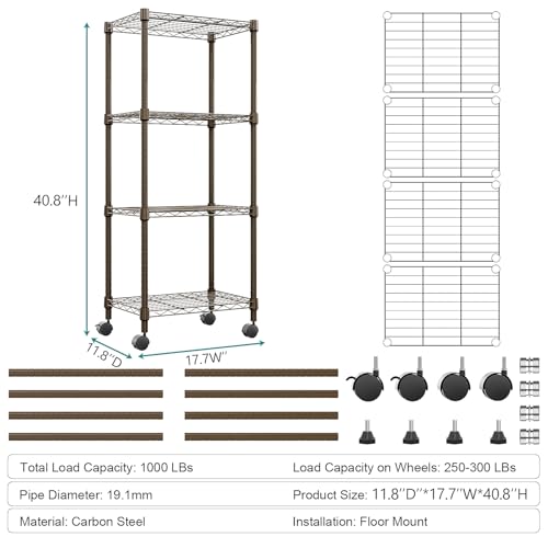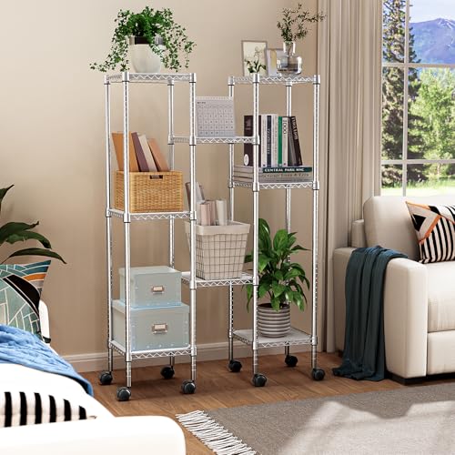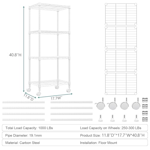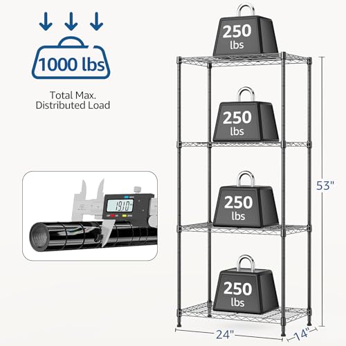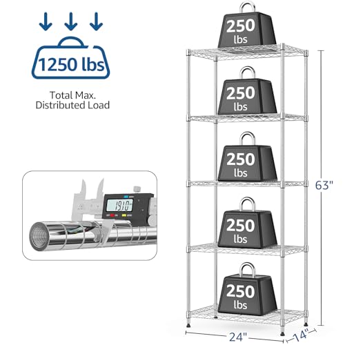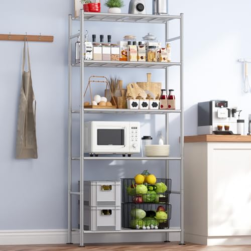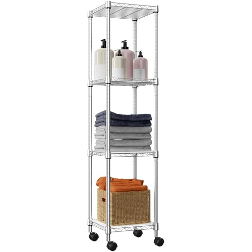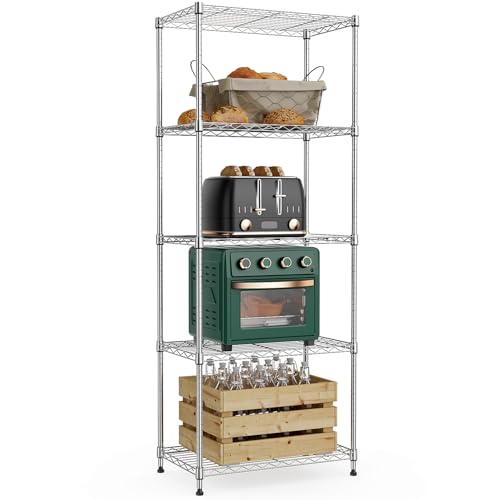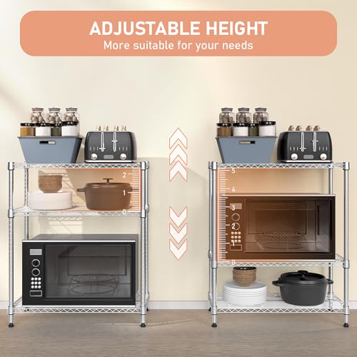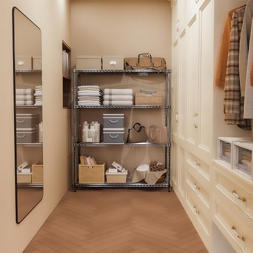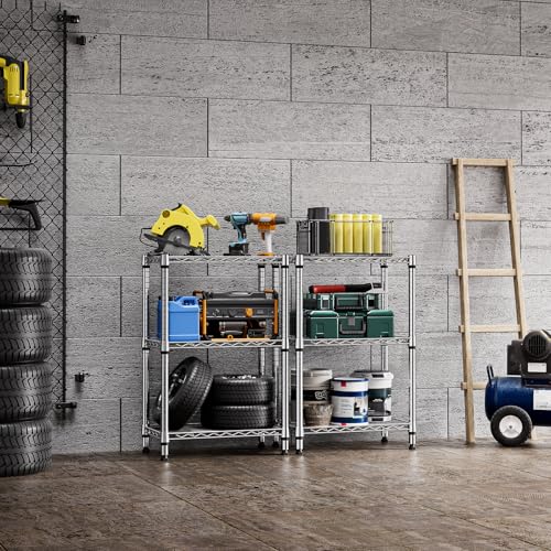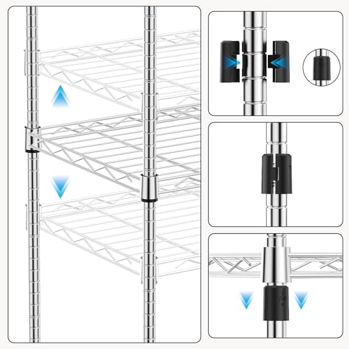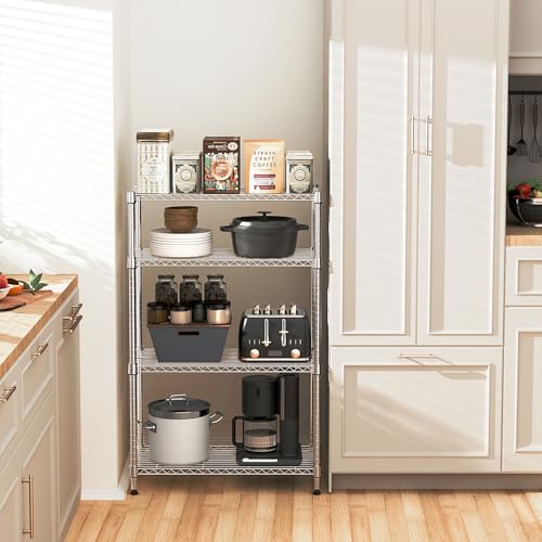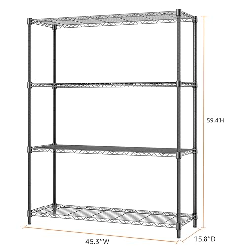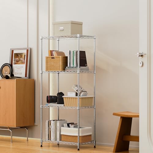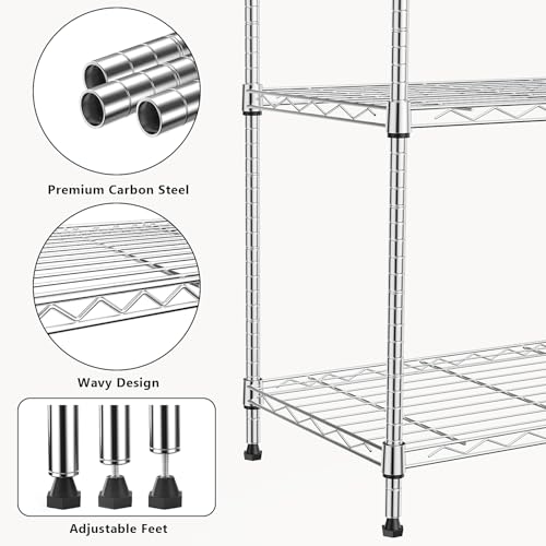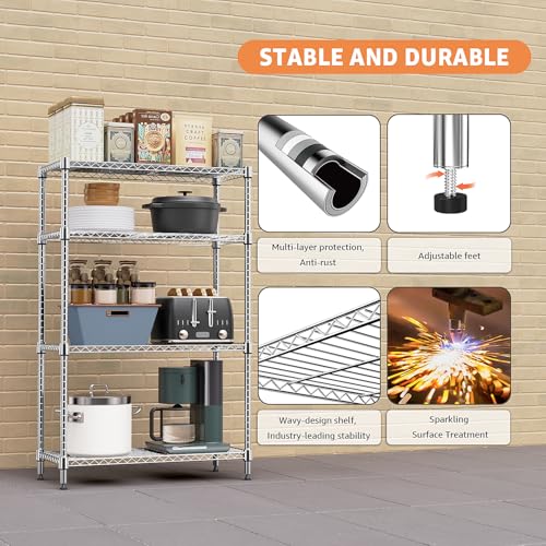 5-Shelf Storage Shelves,Wire Shelving Heavy Duty Metal Storage Shelving Unit Adjustable Garage Shelving Rack Pantry Kitchen (Chrome, 4 Tier,15.8" D x 45.3" W x 59.4" H)