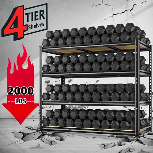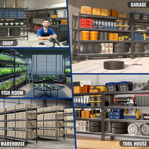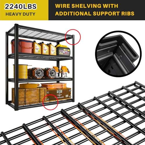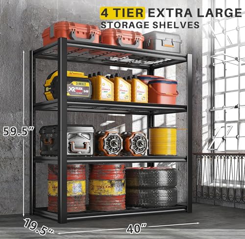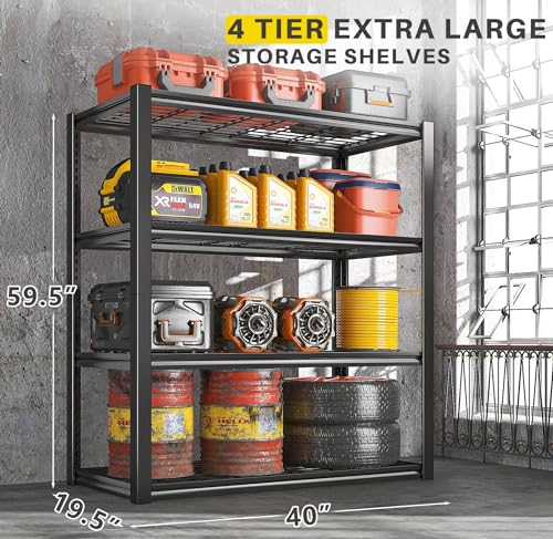 REIBII 40" W Garage Shelving 2240 LBS Storage Shelves Adjustable Metal Shelving Heavy Duty 4 Tier Metal Shelves for Pantry Basement Warehouse 40" W × 19.5" D × 59.5" H