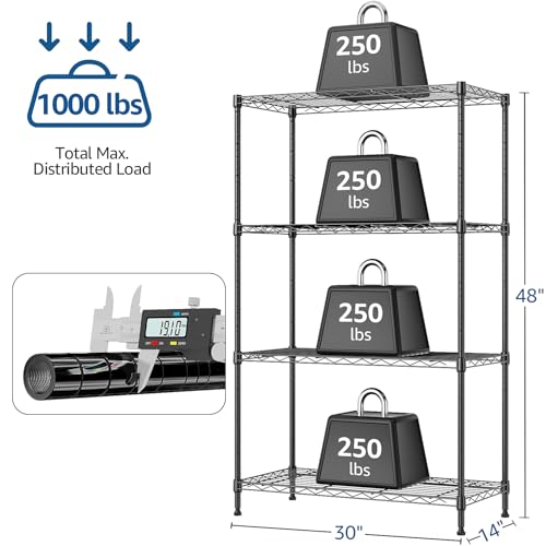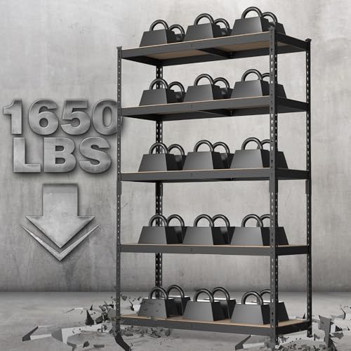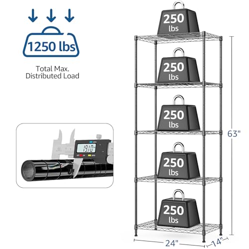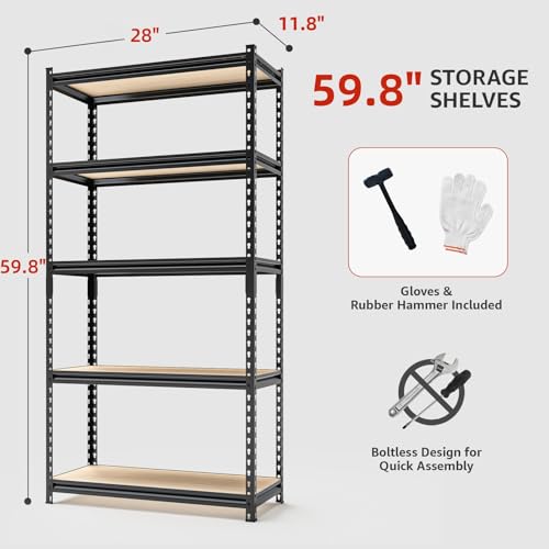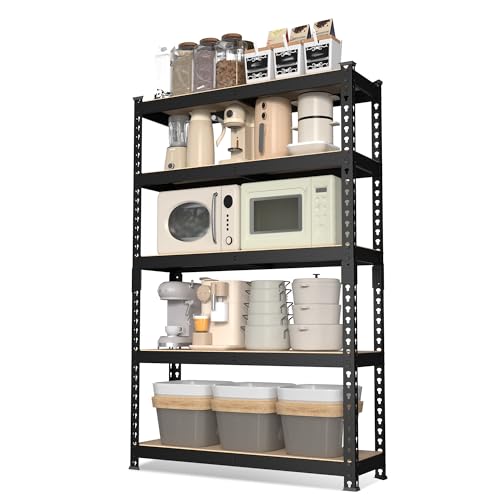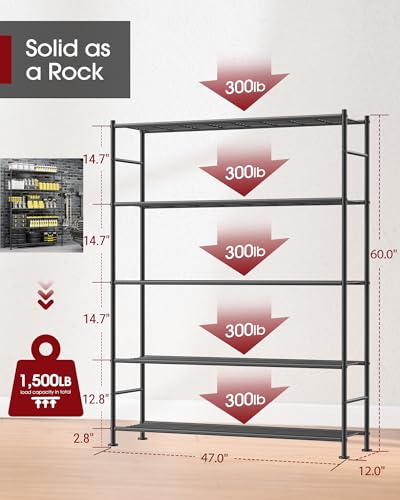 Storage Shelves Garage Shelving Heavy Duty 5 Tier Metal Shelving Units for Storage Adjustable Utility Shelf Rack for Kitchen Warehouse Basement 28" W x 11.8" D x 59.8" H, Black