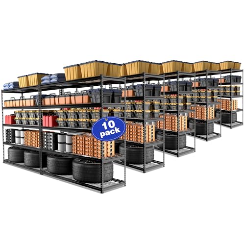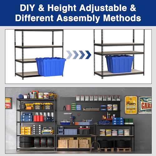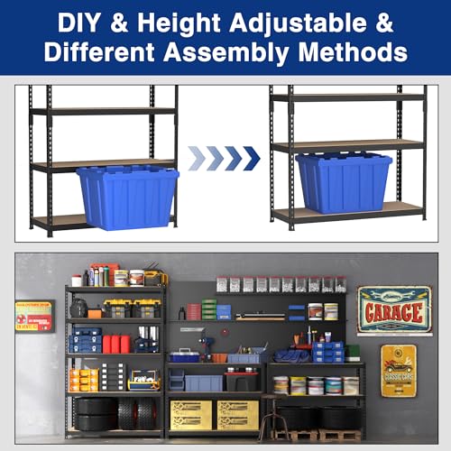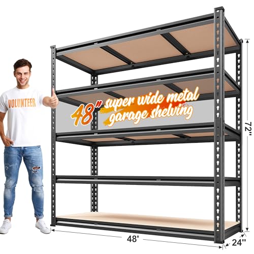 REIBII 48" W Garage Shelving Heavy Duty 3020LBS Storage Shelves 5 Tier Heavy Duty Shelving Adjustable Garage Shelves for Basement, Warehouse, Commercial, Easy Assemble, 48" W x 72" H x 24" D