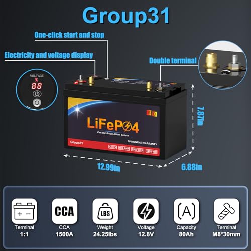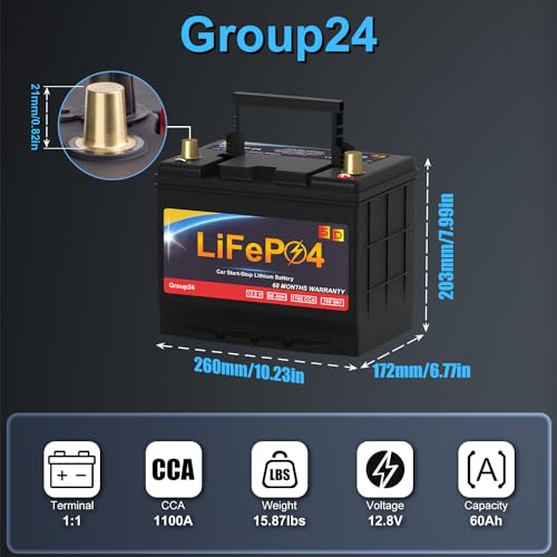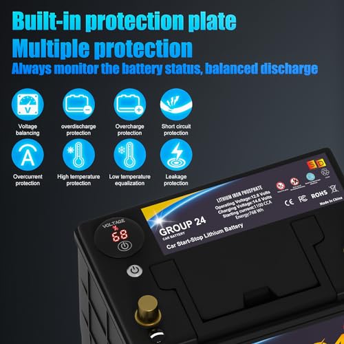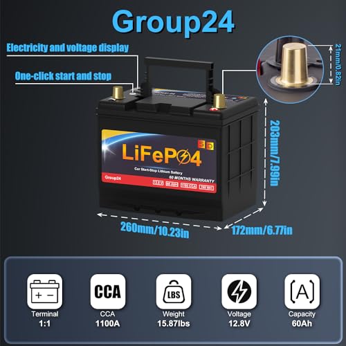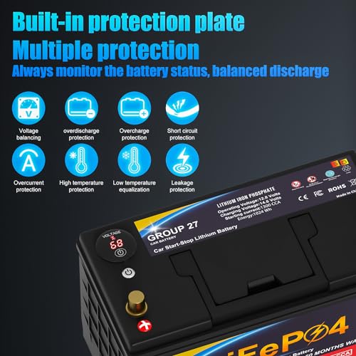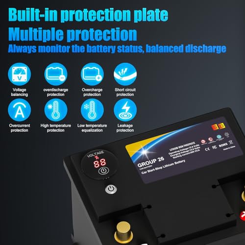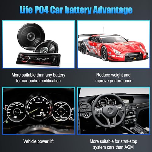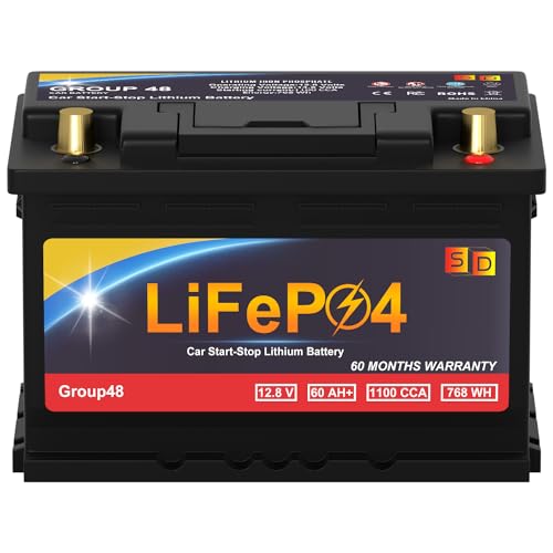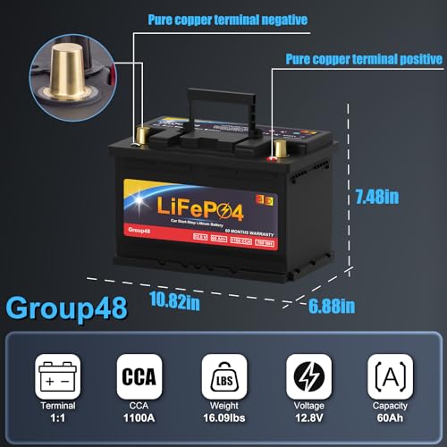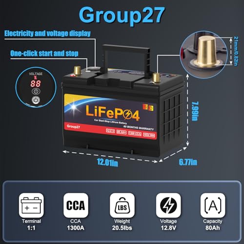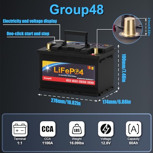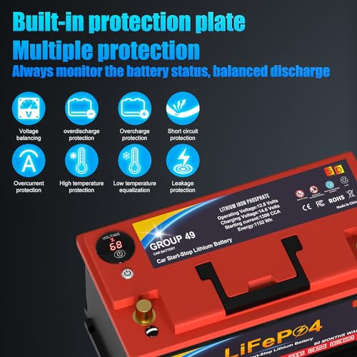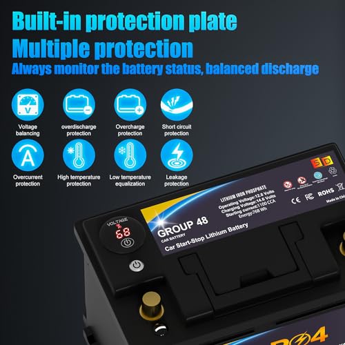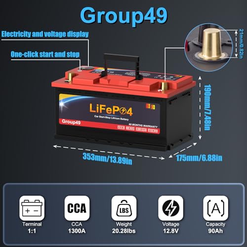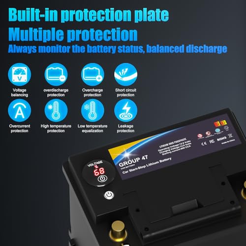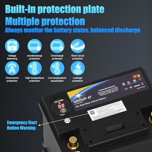 Lithium Car Battery Start and Stop, 12.8V 576WH Group 47 LiFePO4 Automotive Battery For Car, Starter Battery Plus Deep Cycle Performance, 36 Months Warranty