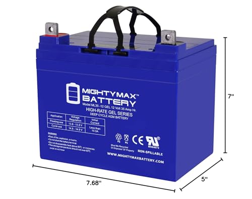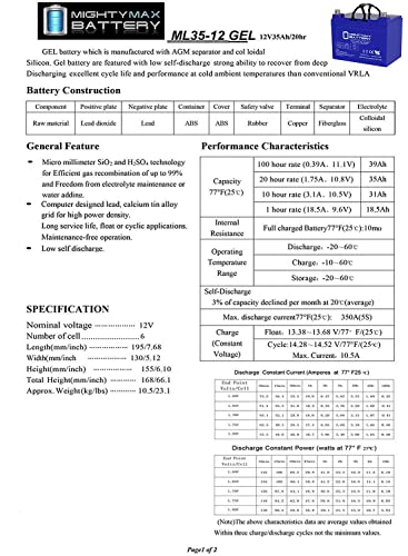 Mighty Max Battery ML35-12 Gel - 12 Volt 35 AH, Gel Type, Nut and Bolt (NB) Terminal, Rechargeable AGM Battery