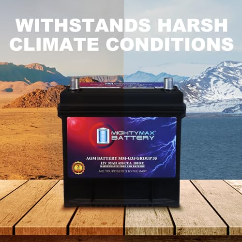 Mighty Max Battery MM-G35 Group Size 35 12V, 55Ah, 100RC, AGM, 650 CCA, Replacement Battery Compatible with Honda CR-V 14-16