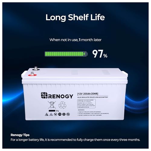 Renogy Deep Cycle AGM 12 Volt 100Ah Battery, 3% Self-Discharge Rate, 1100A Max Discharge Current, Safe Charge Appliances for RV, Camping, Cabin, Marine and Off-Grid System, Maintenance-Free