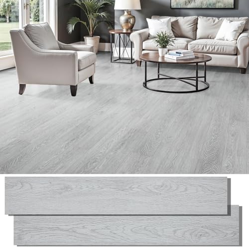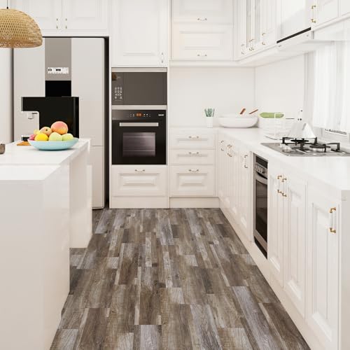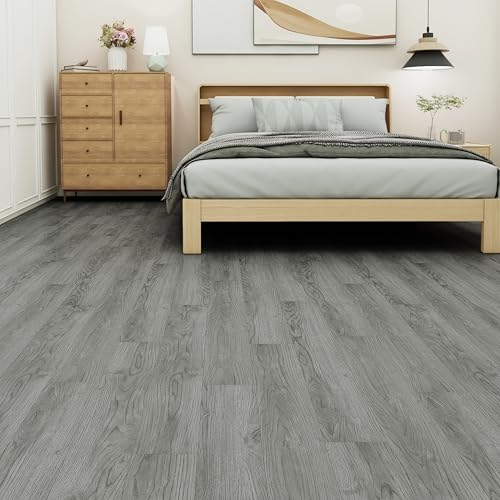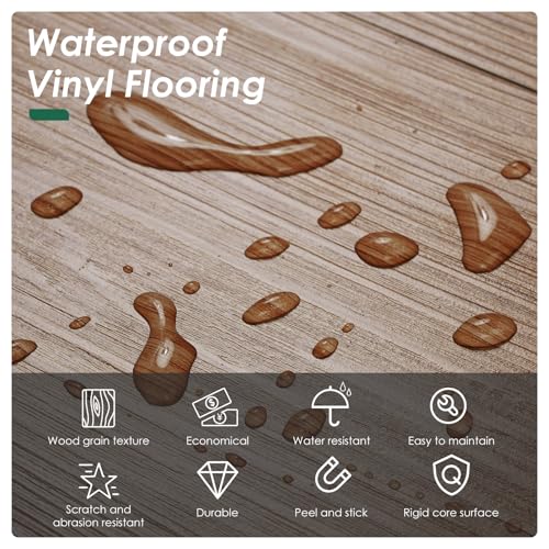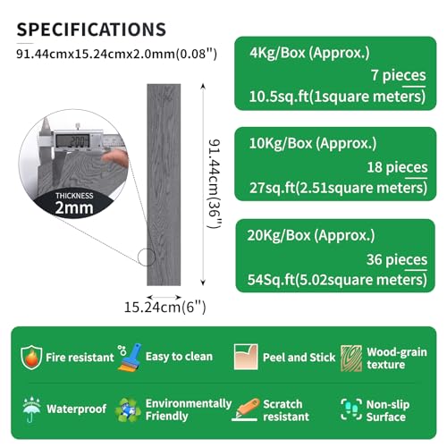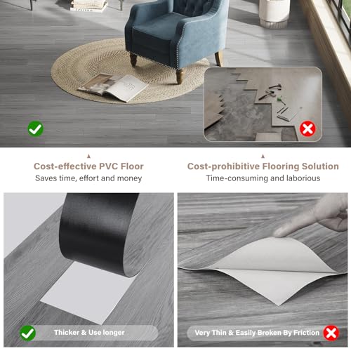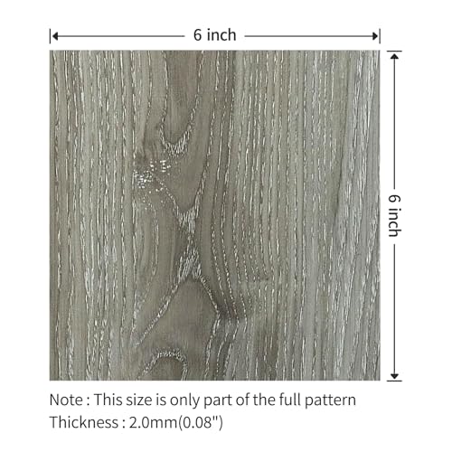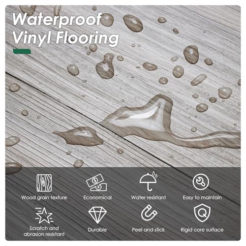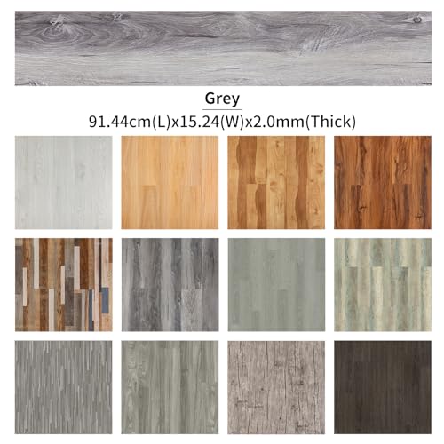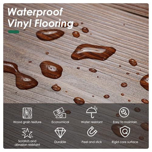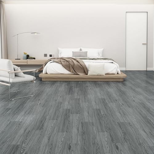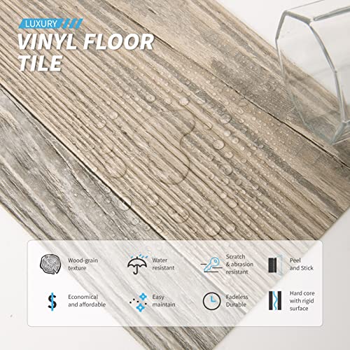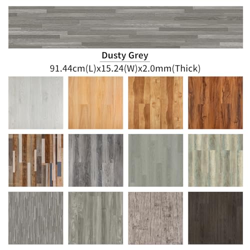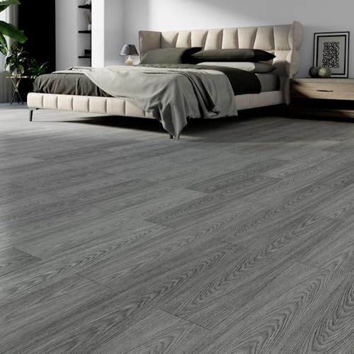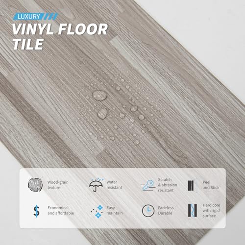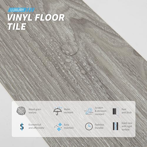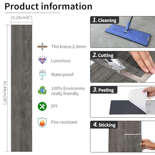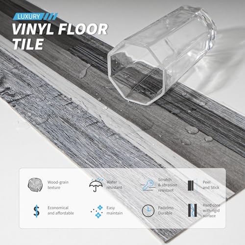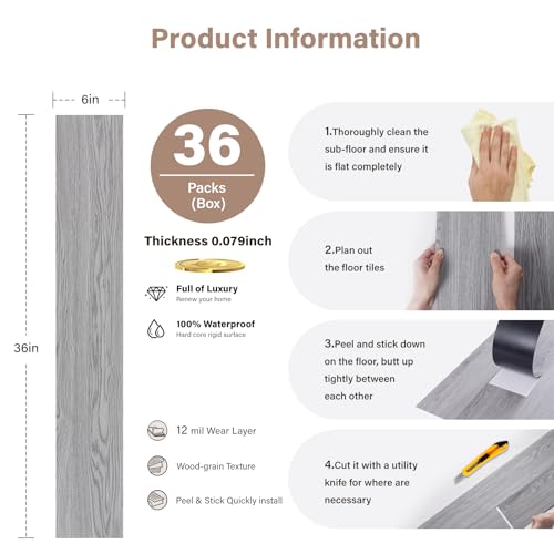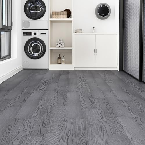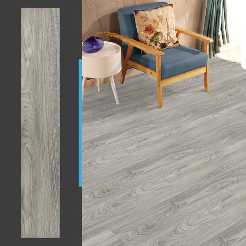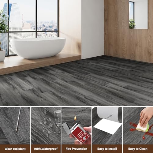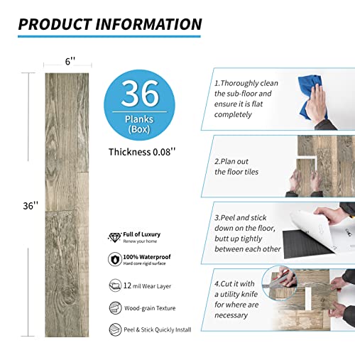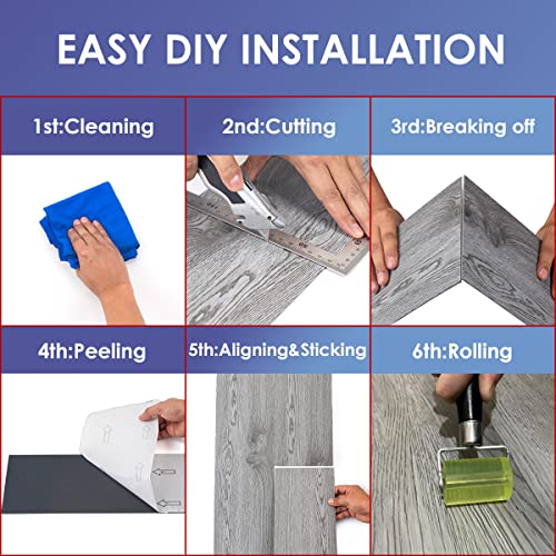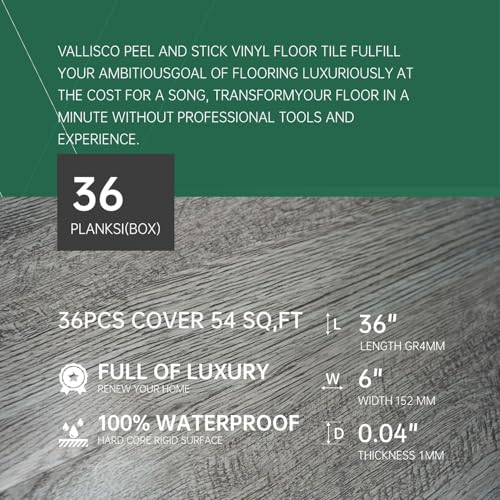 Peel and Stick Floor Tile Waterproof,Gray Wood Grain Vinyl Flooring Plank, 36 Planks/54 Sq.Ft 2mm Thick, Eco-Friendly, Self-Adhesive for Kitchen, Bathroom, Office, Dining Room