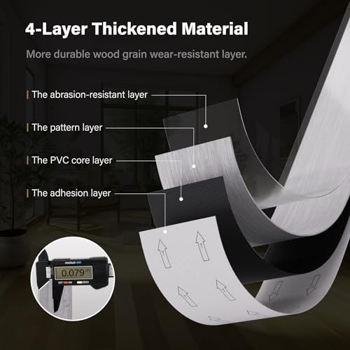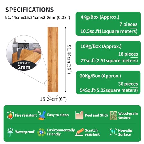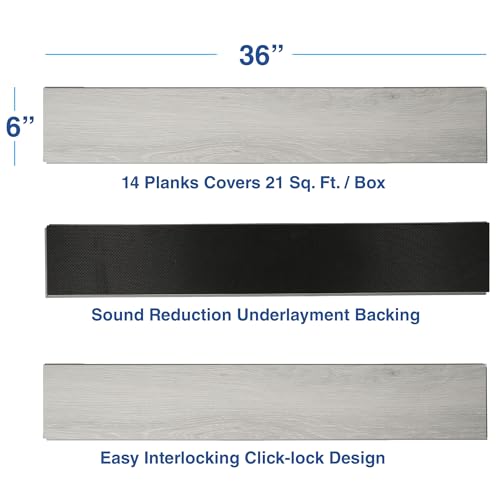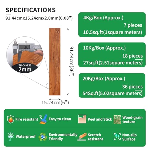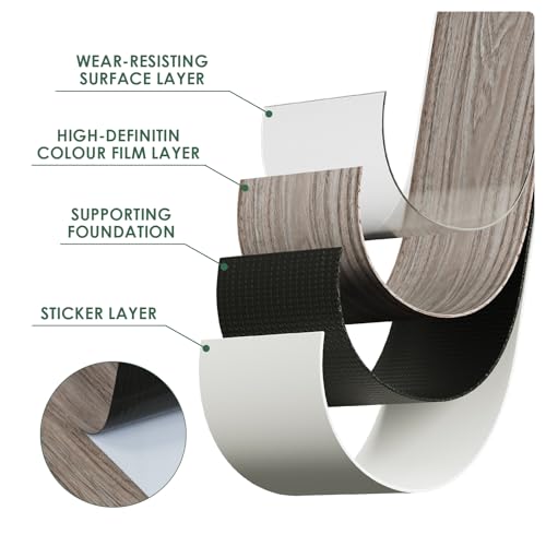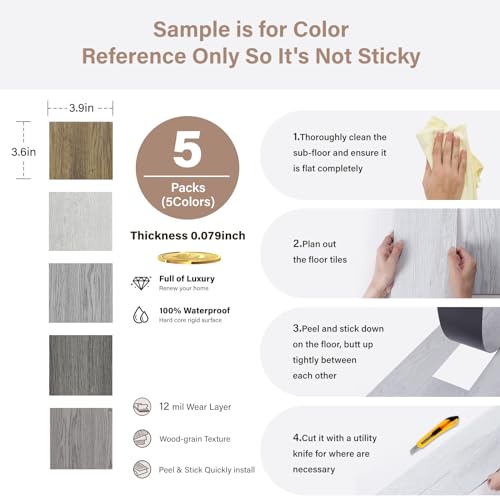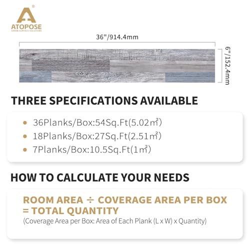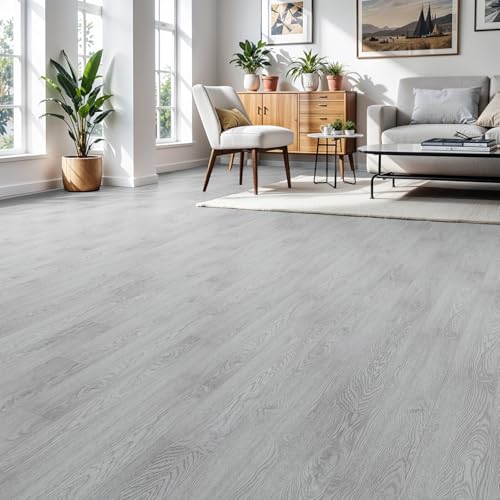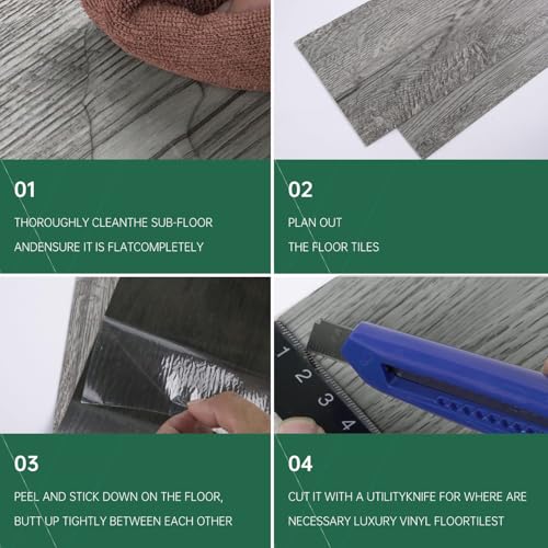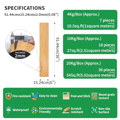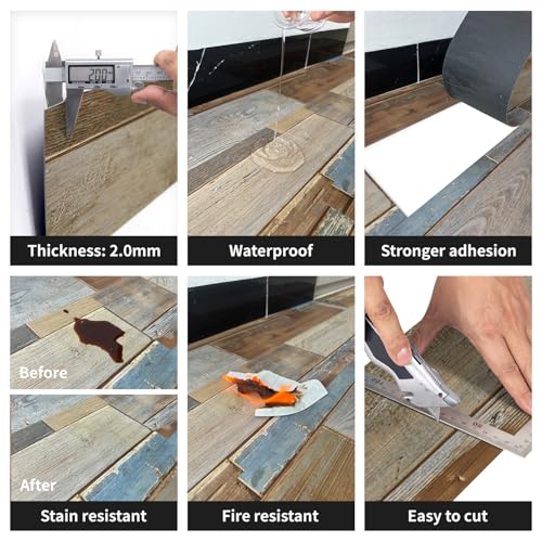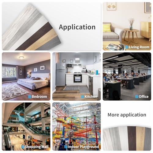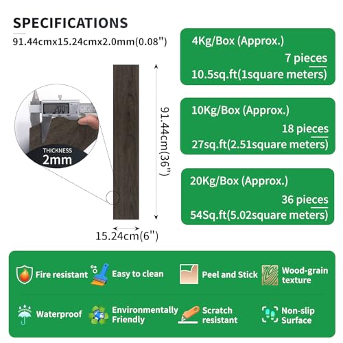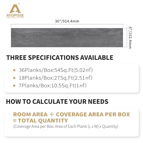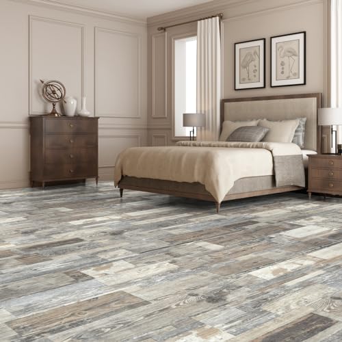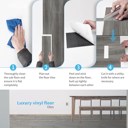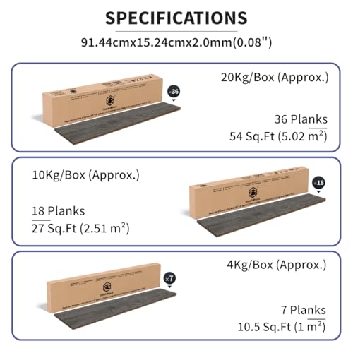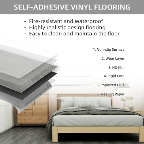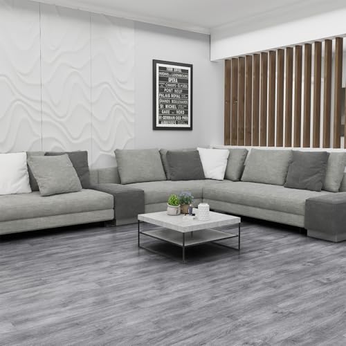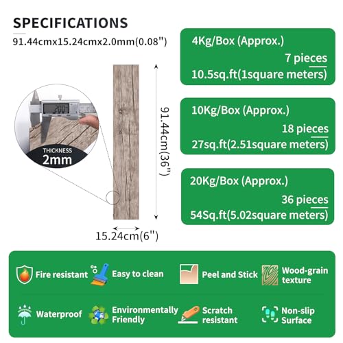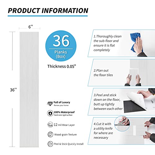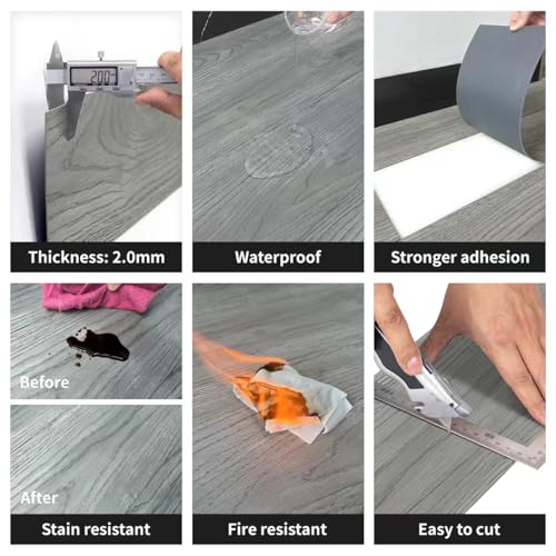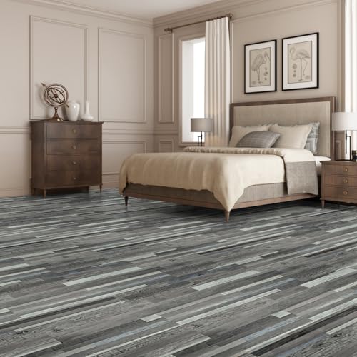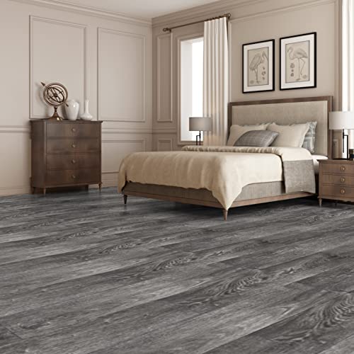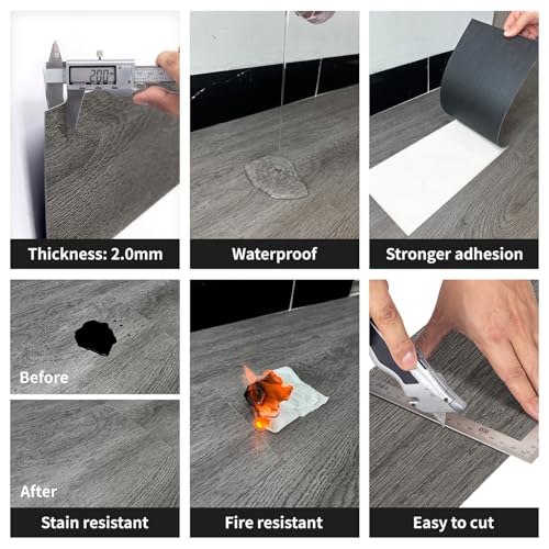 Peel and Stick Floor Tile Waterproof,Gray Wood Grain Vinyl Flooring Plank, 36 Planks/54 Sq.Ft 2mm Thick, Eco-Friendly, Self-Adhesive for Kitchen, Bathroom, Office, Dining Room