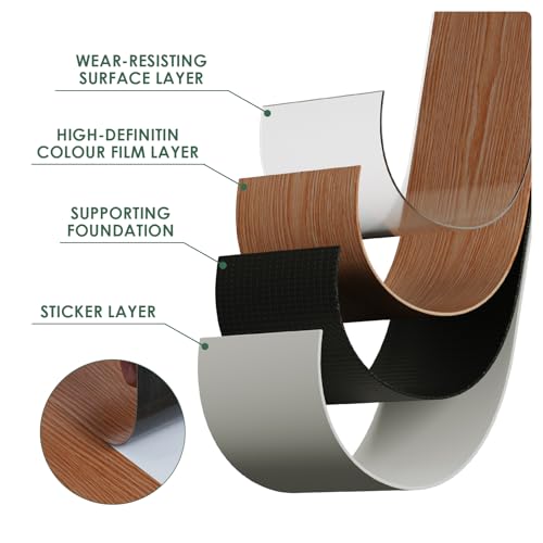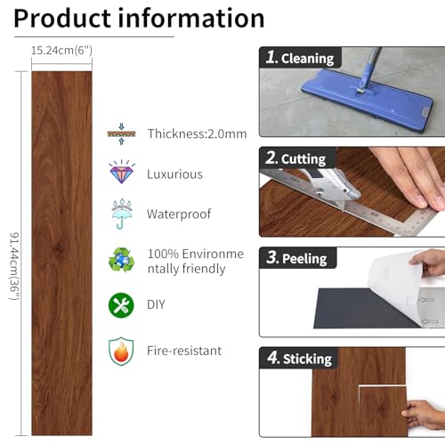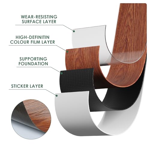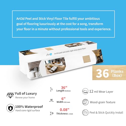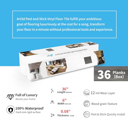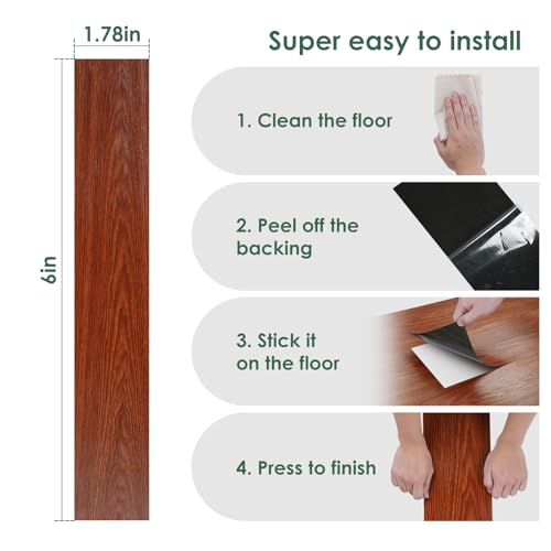 Art3d 36-Pack 54 Sq.ft Peel and Stick Floor Tiles Vinyl Plank Flooring Wood Look, Adhesive and Waterproof Tile Sticker for Bedroom, Living Room, Kitchen, RV in Rosewood