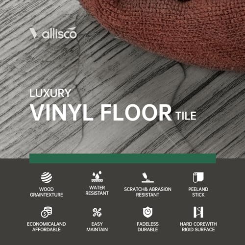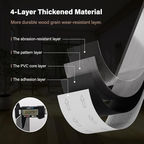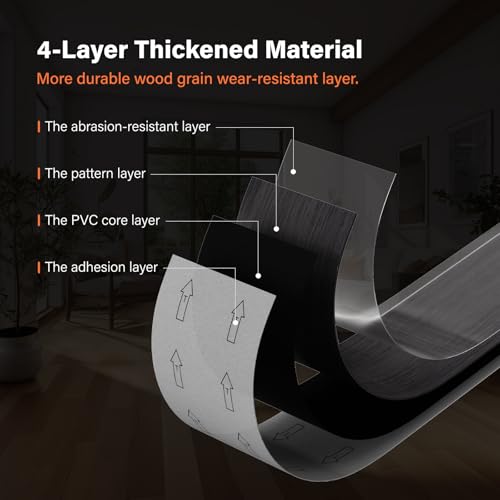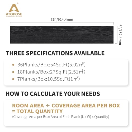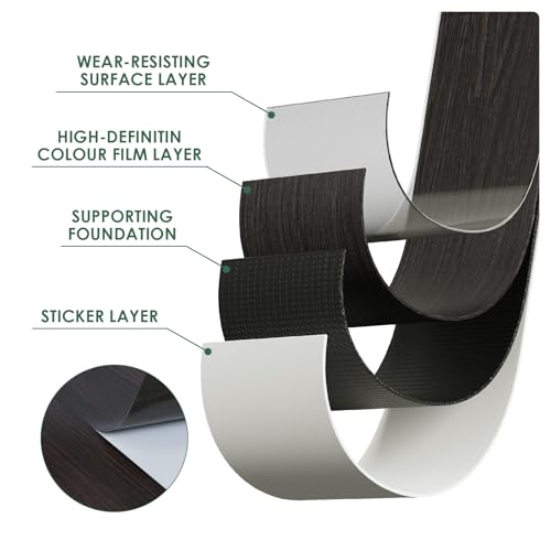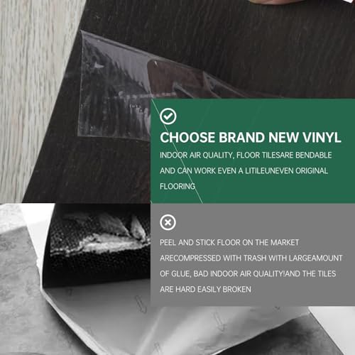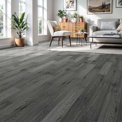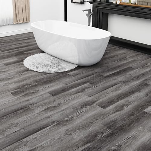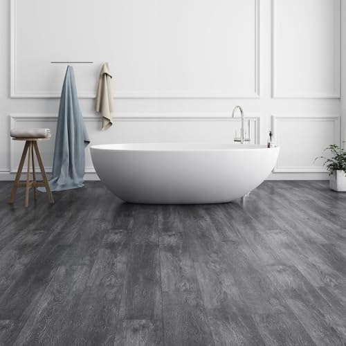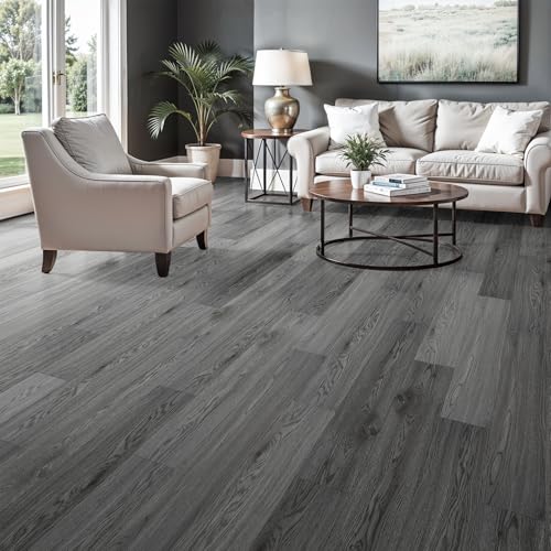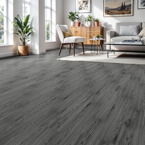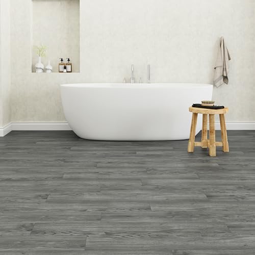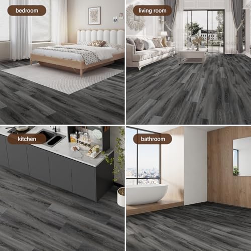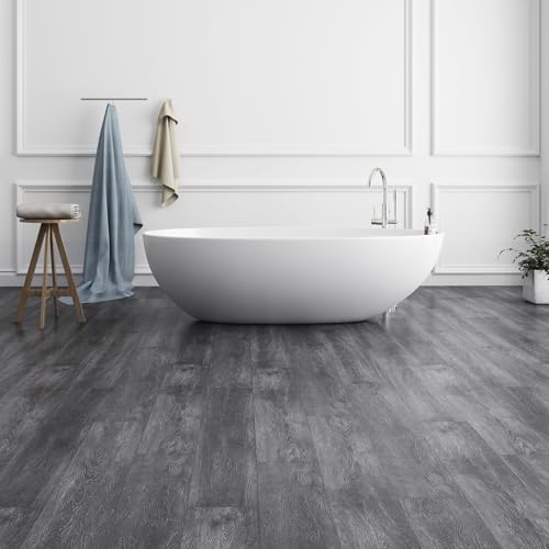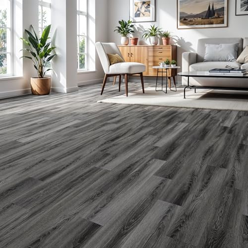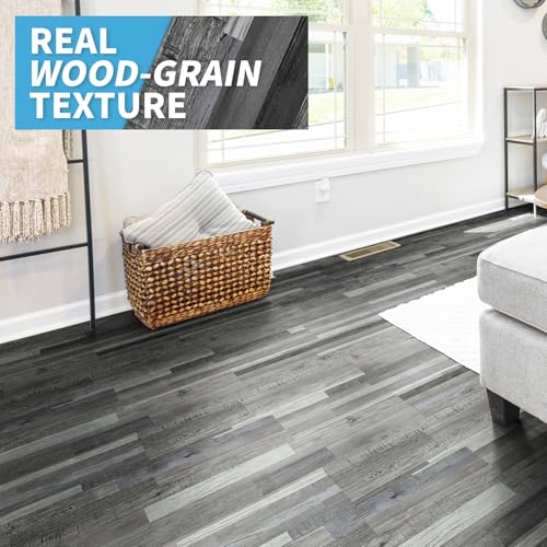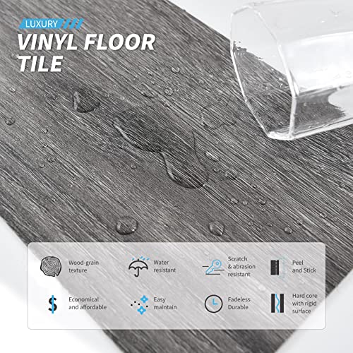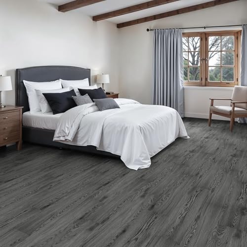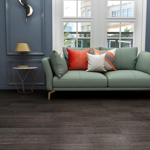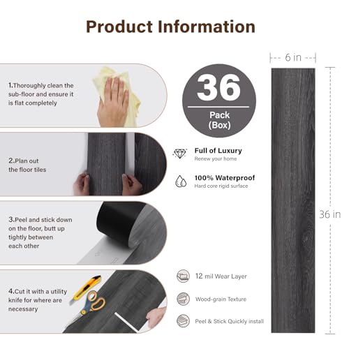 Art3d Peel and Stick Floor Tile Vinyl Wood Plank 36-Pack 54 Sq.Ft, Deep Gray, Rigid Surface Hard Core Easy DIY Self-Adhesive Flooring