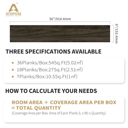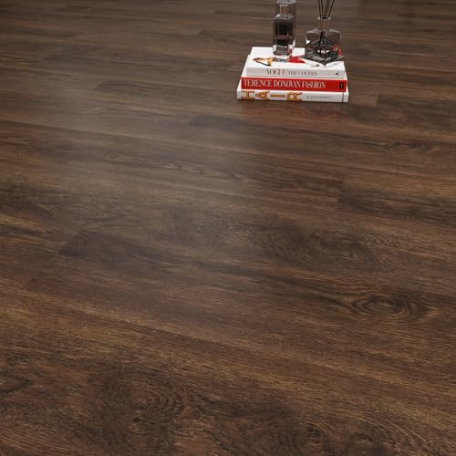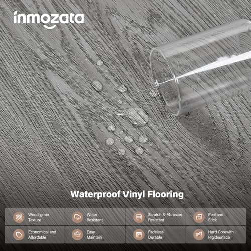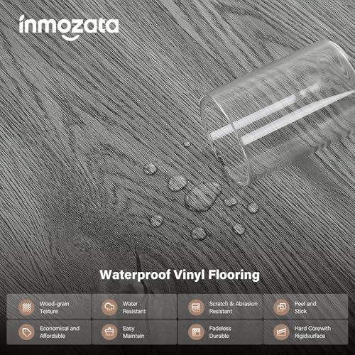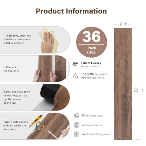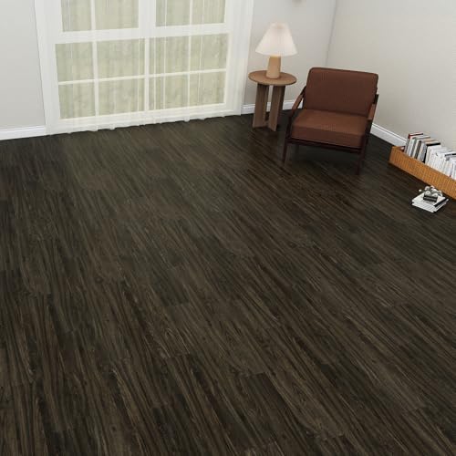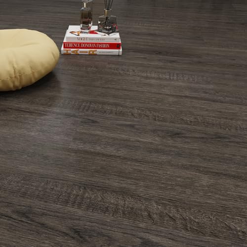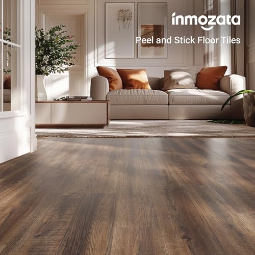 Peel and Stick Floor Tile, INMOZATA 36-Pack 54 Sq.Ft Self Adhesive Vinyl Plank Flooring Wood Grain Look 36x6 Inch Waterproof Tile Sticker for Bedroom, Living Room, Kitchen, RV (Smoked Brown)