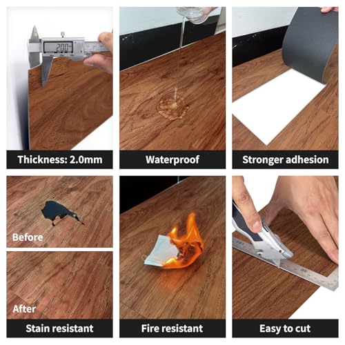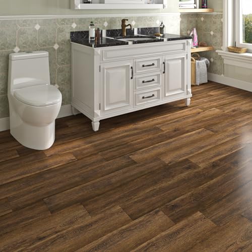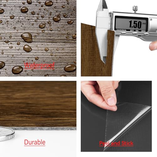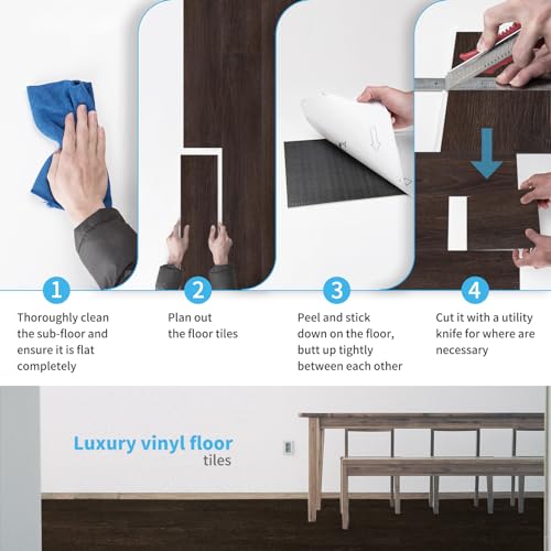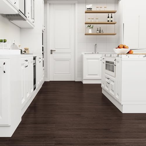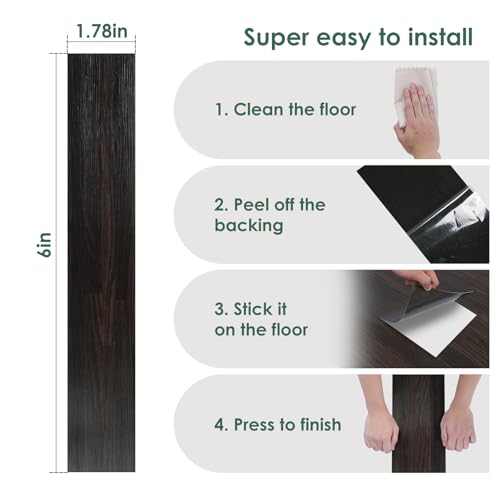 Livelynine 18-Pack Dark Walnut Wood Grain Peel and Stick Floor Tile Waterproof Flooring Planks 6x36 Laminate Flooring Luxury Self Adhesive Vinyl Plank Flooring Linoleum Stick on Bathroom Tiles