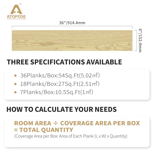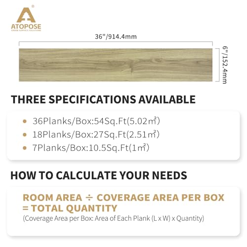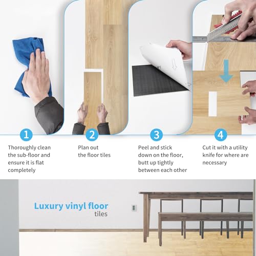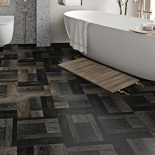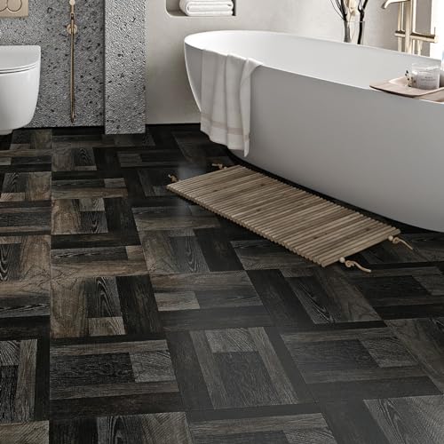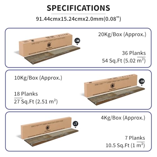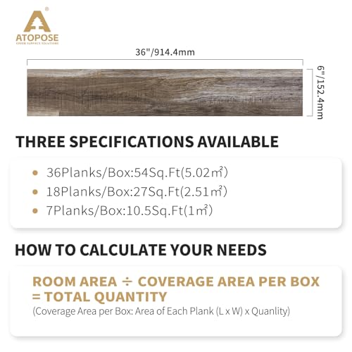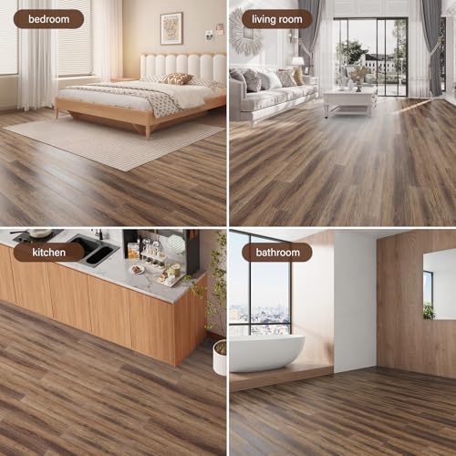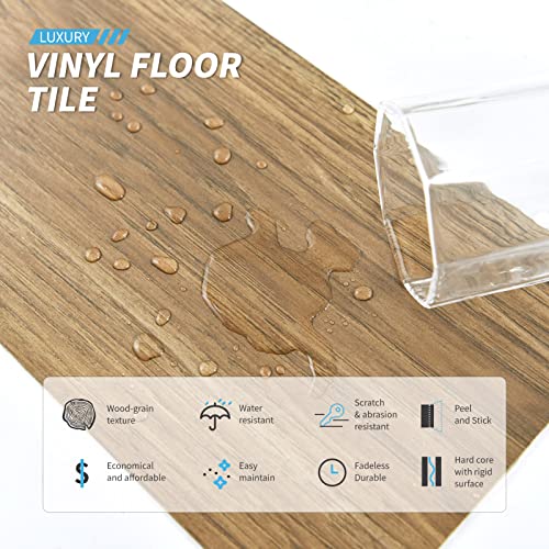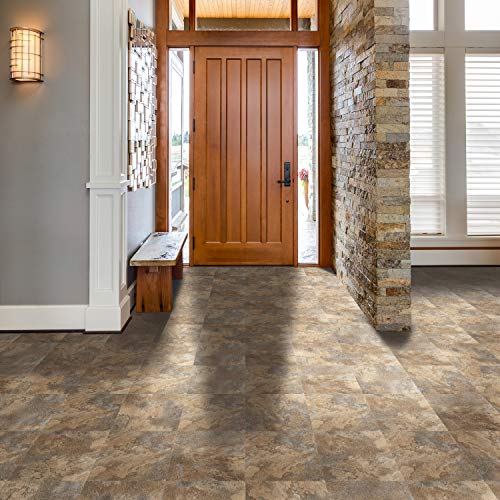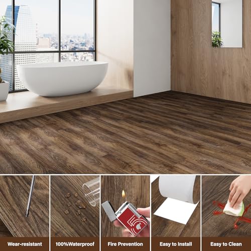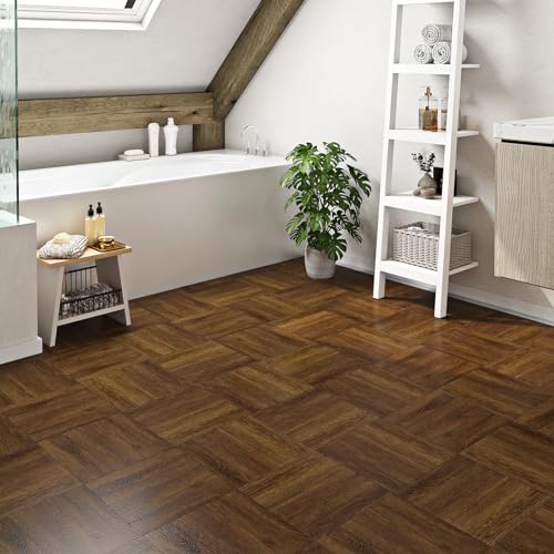 Peel and Stick Vinyl Flooring 36 Pack 54 Sq.Ft, Waterproof Vinyl Flooring Peel and Stick for Office, Living Room, Bathroom, Kitchen - Unique Design, Easy to Install Floor, Brown