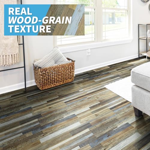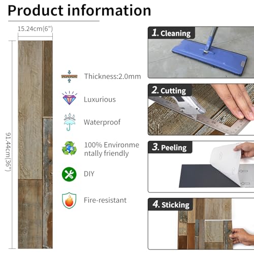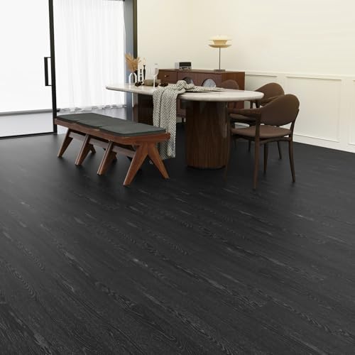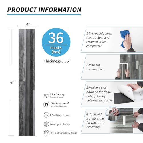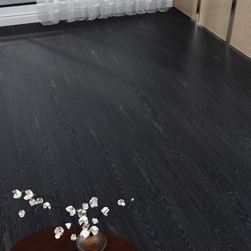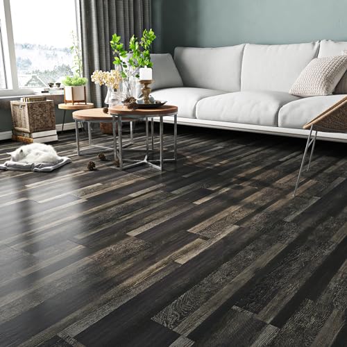 Livelynine 36-Pack 6x36" Reclaimed Black Wood Peel and Stick Floor Tile Waterproof Vinyl Flooring Planks Laminate Wood Look Luxury Vinyl Plank Flooring Self Adhesive Vinyl Kitchen Floor Tiles Sticky