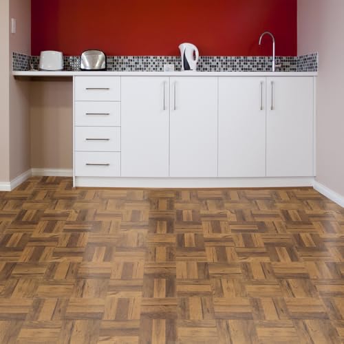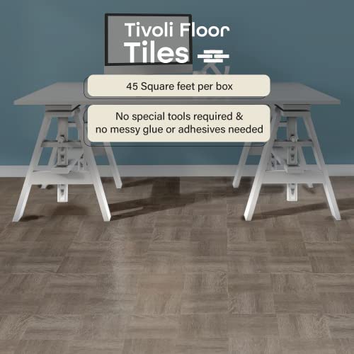 Tivoli Self Adhesive Vinyl Floor Tiles, 45 Tiles - 12" x 12", Medium Oak Plank-Look - Peel & Stick, DIY Flooring for Kitchen, Dining Room, Bedrooms, Basements & Bathrooms by Achim Home Decor