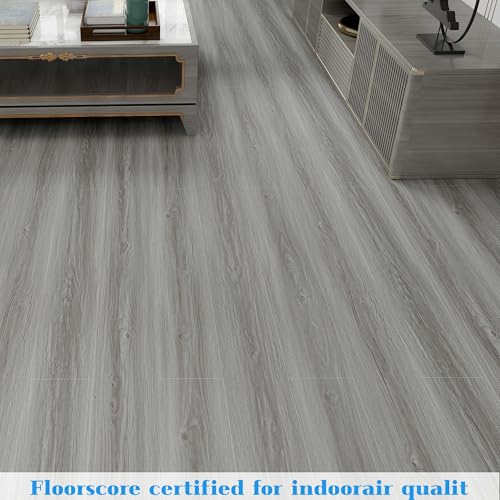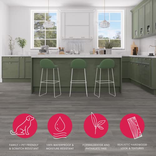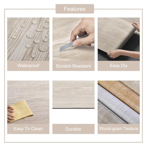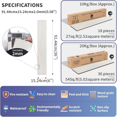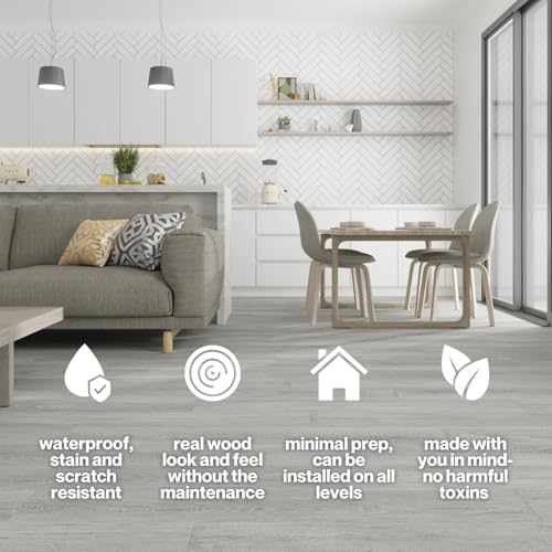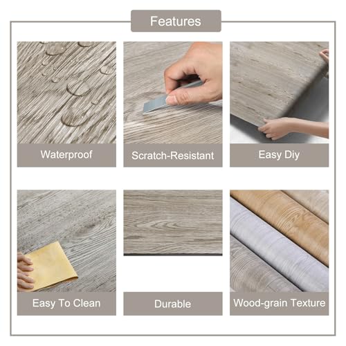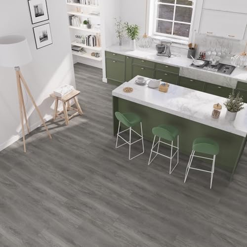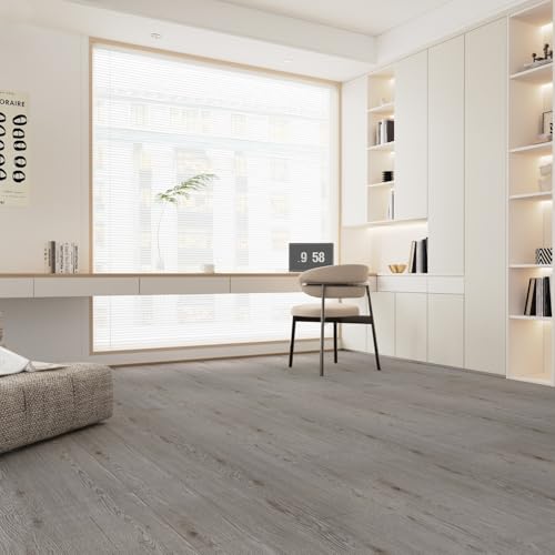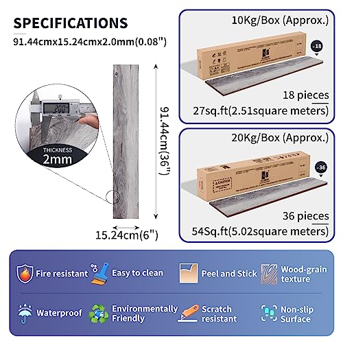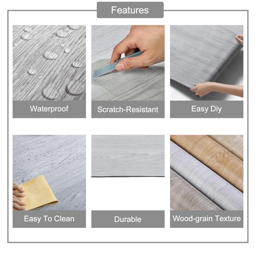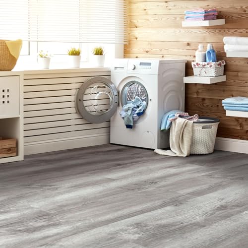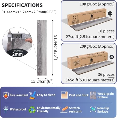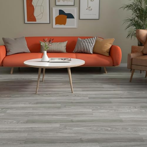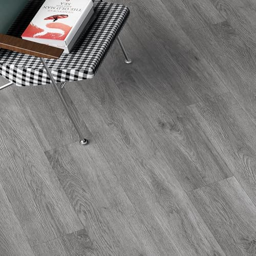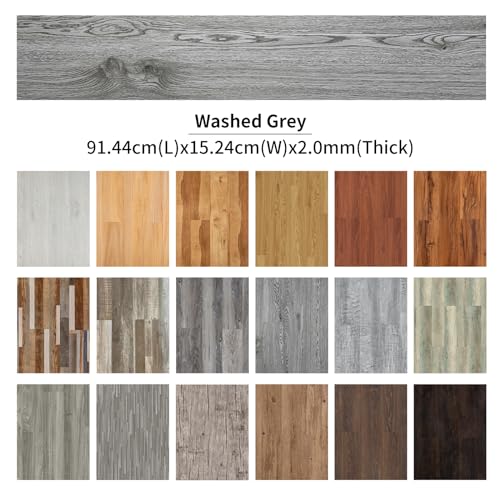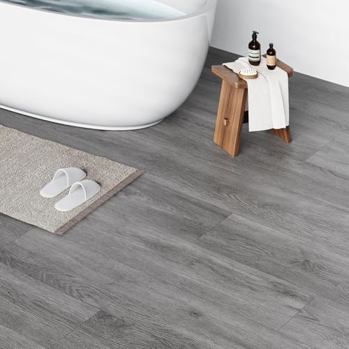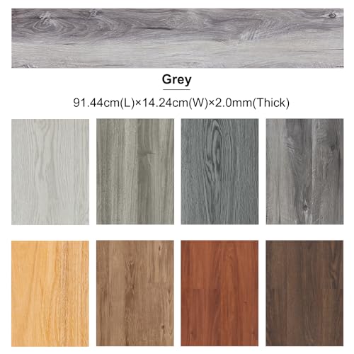 Vinyl Flooring | Self Adhesive Flooring Plank with Wood Effect | Peel and Stick Floor Tiles | Self Adhesive Flooring | 2.0mm 36pcs Waterproof for Bedroom Office Floor Plank(54Sq.Ft,Grey)