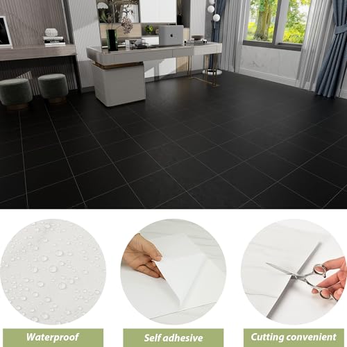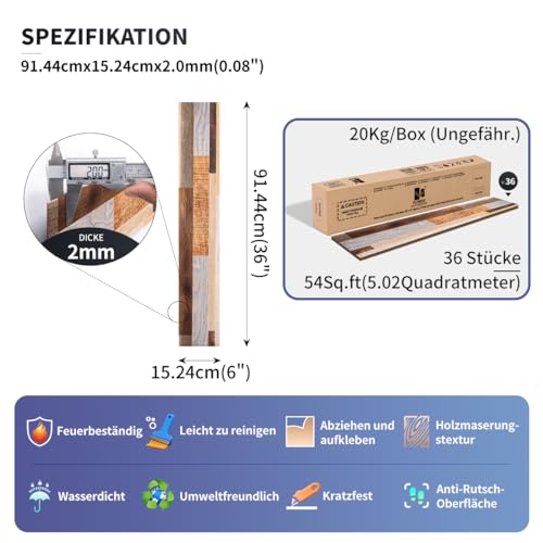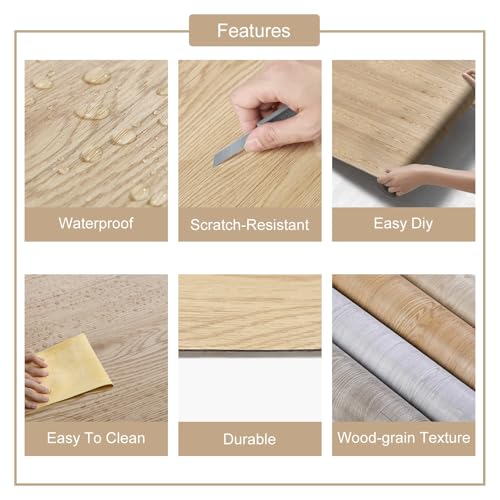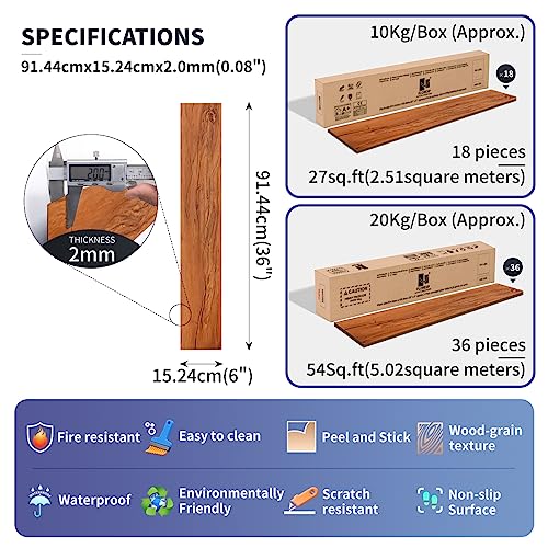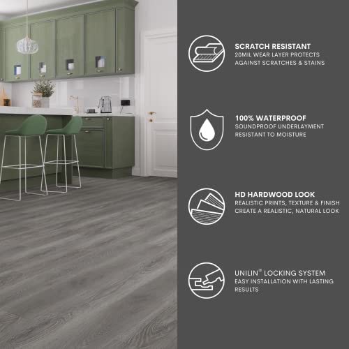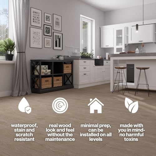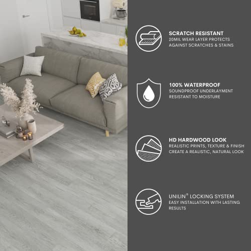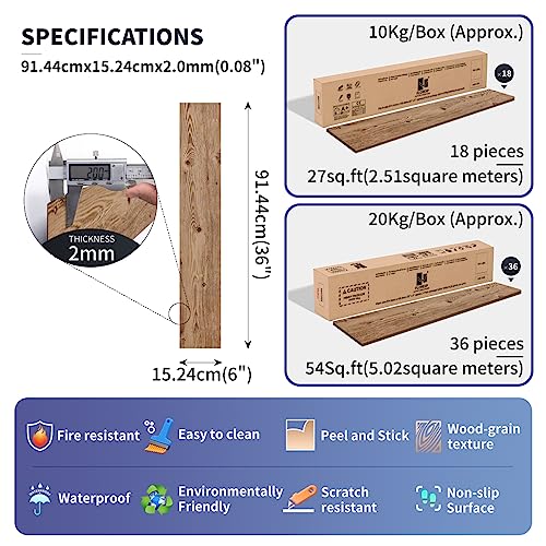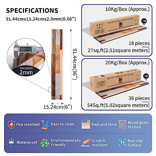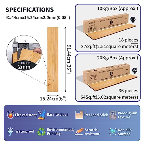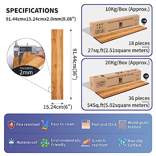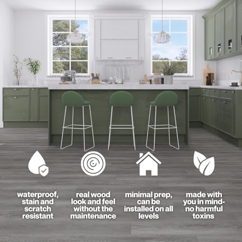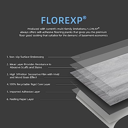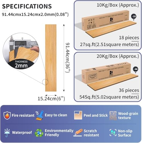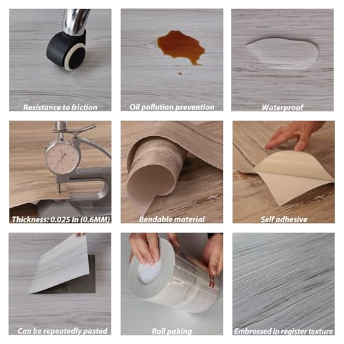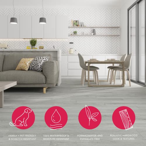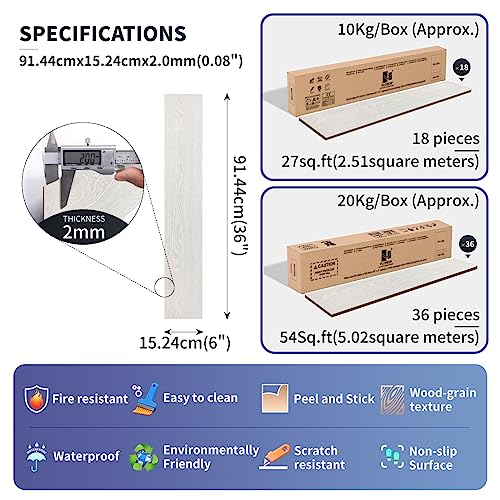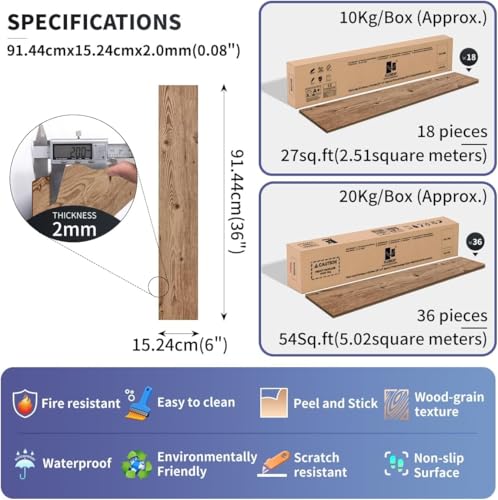 Vinyl Flooring | Self Adhesive Flooring Plank with Wood Effect | Peel and Stick Floor Tiles | Self Adhesive Flooring | 2.0mm 36pcs Waterproof for Bedroom Office Floor Plank(54Sq.Ft,Grey)