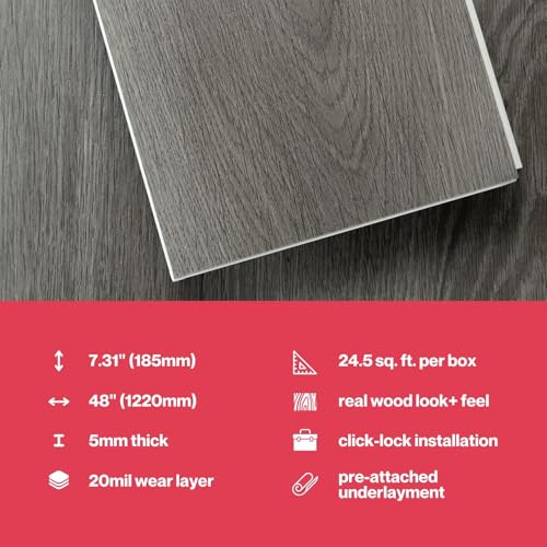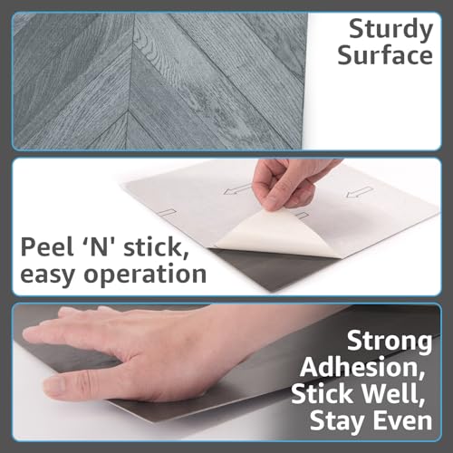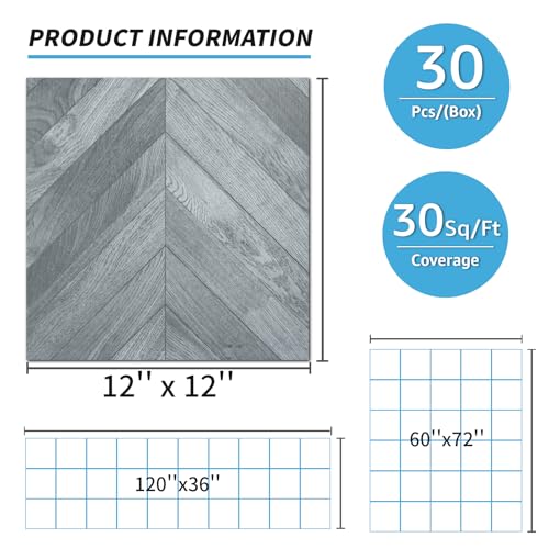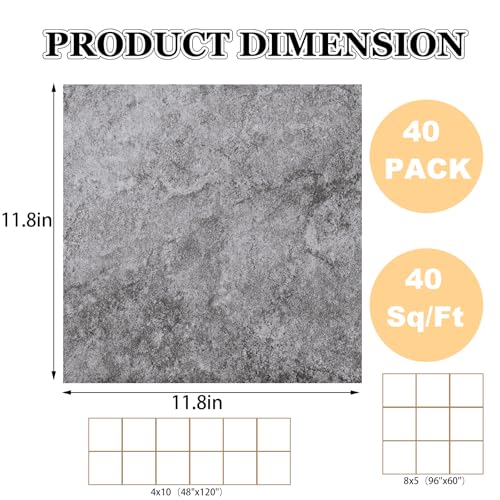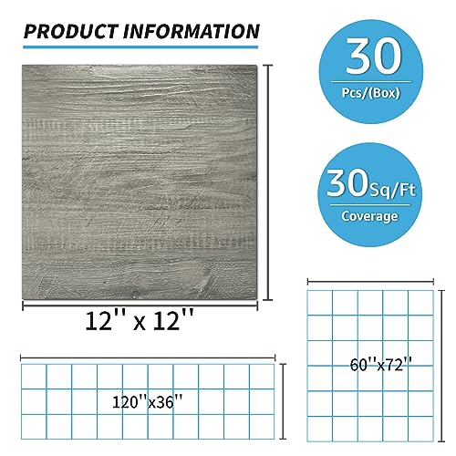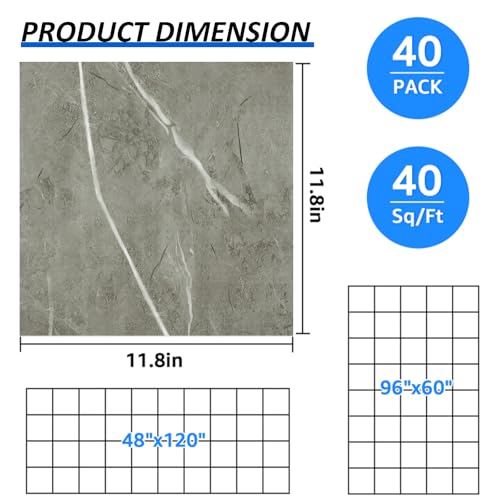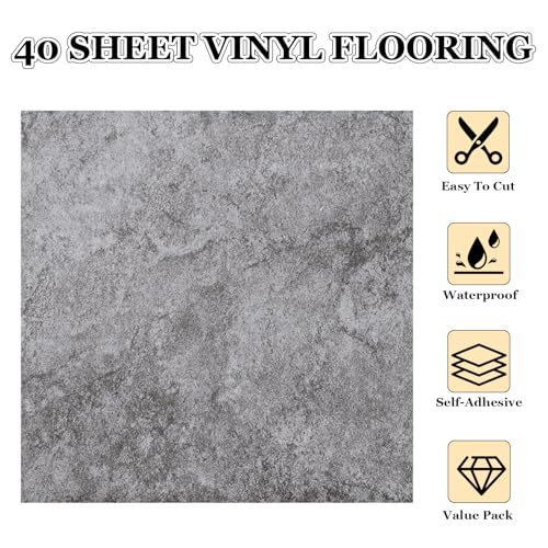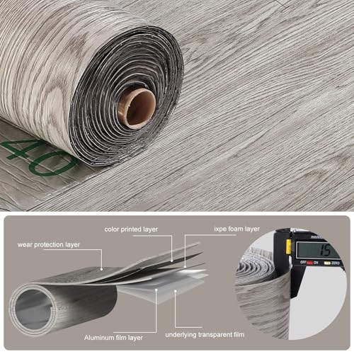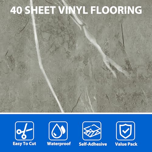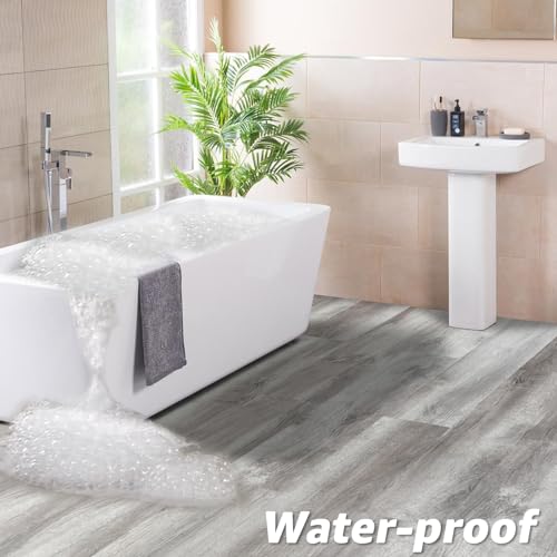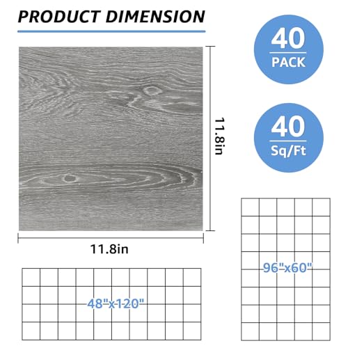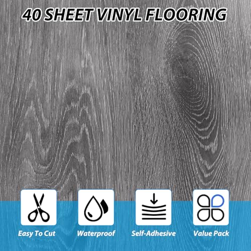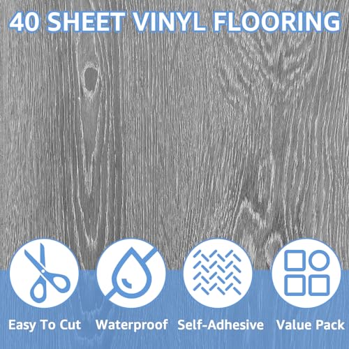 40 Sheet Vinyl Flooring 12 x 12 Peel and Stick Floor Tile Waterproof Clearance Vinyl Floor Tiles Wood Grey Self Adhesive Floor Tiles Sticky Laminate Flooring for Bathroom Kitchen Basement RV