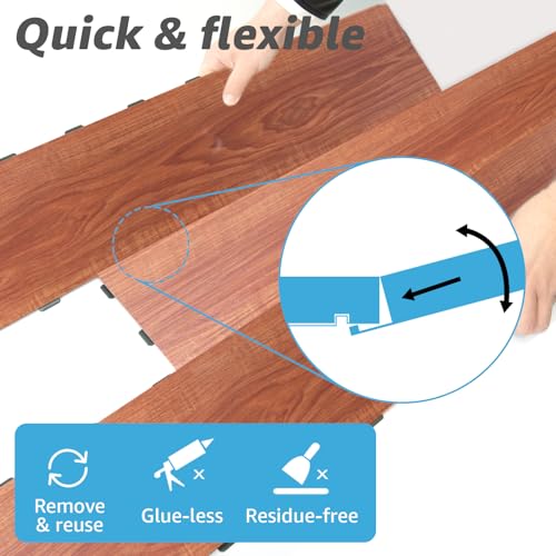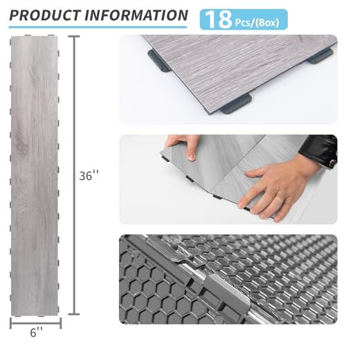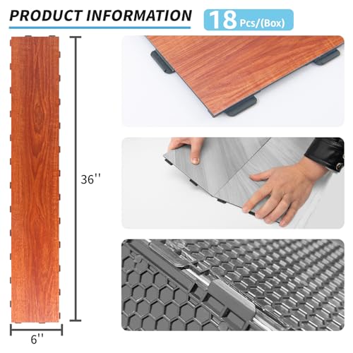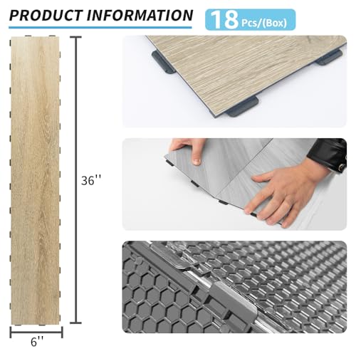 Art3d Interlocking Luxury Vinyl Flooring Tile, Wood Floor Plank for Kitchen Bathroom - Waterproof, Anti-Slip, Wear-Resistant, Reusable - 36 x 6 Inch, 18-Pack Cover 27 Sq. Ft