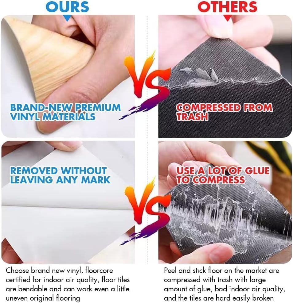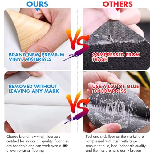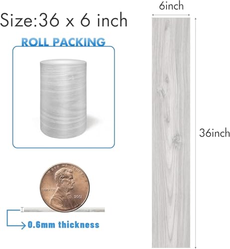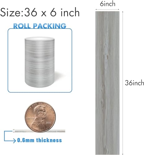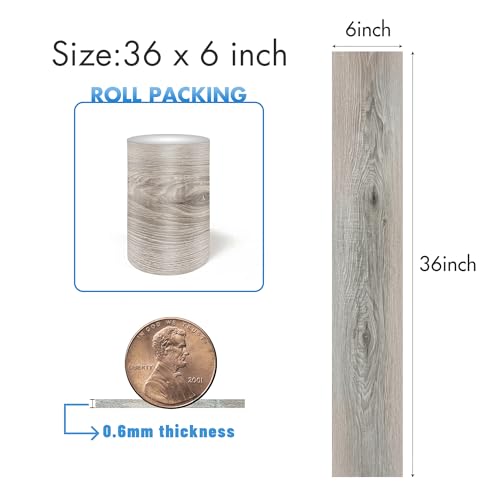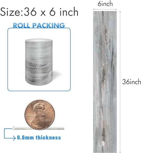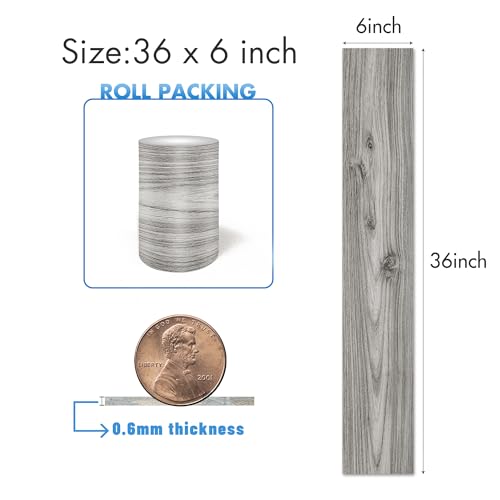 Waterproof Peel and Stick Floor Tile, 36 Pack 54 Sq.Ft(NO Sticky Residue Left) Wood Plank Vinyl Tile Stickers, Self-Adhesive DIY Flooring Tiles for Bedroom, Living Room, Bathroom (36" x 6",Dustgray)