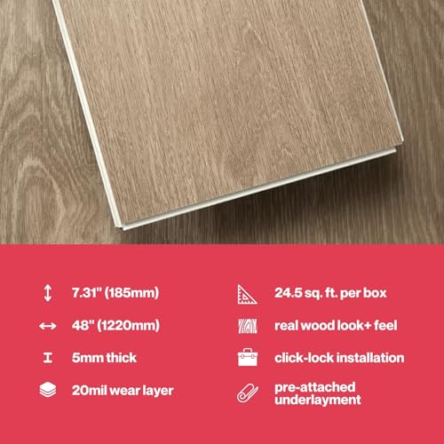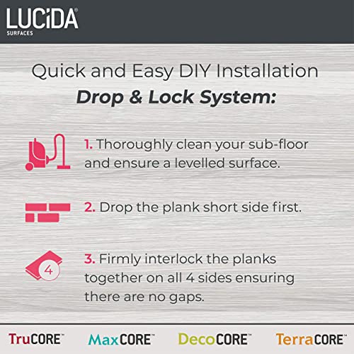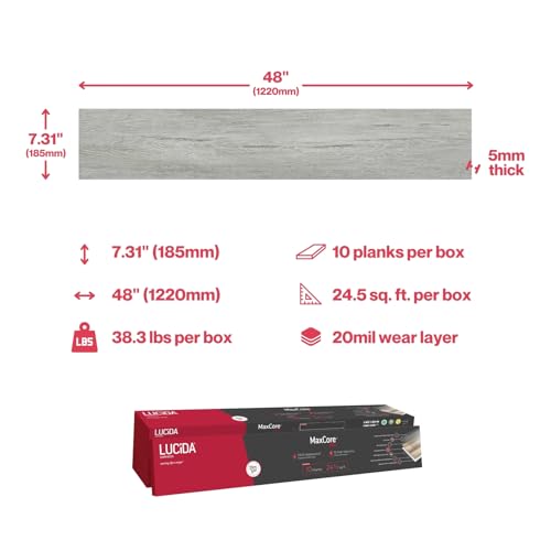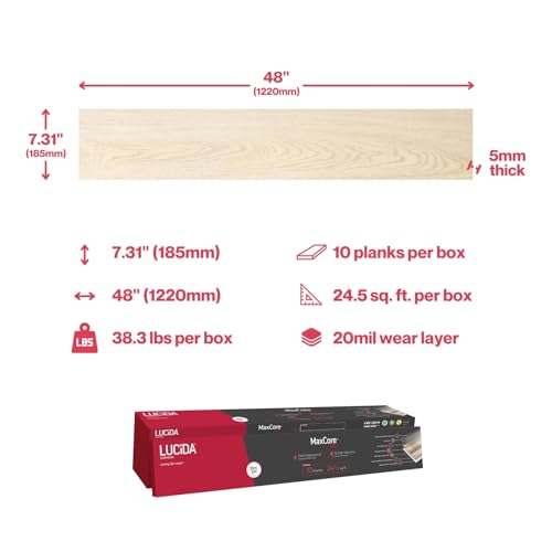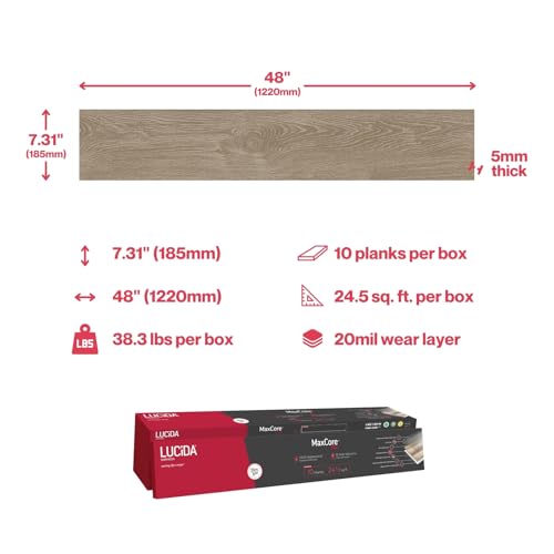 MaxCore Pro | Lucida Surfaces | 7. 5/16"x48" | 24.5 Sq. Ft. | 20mil | 5mm Thick | 10 Pack | Interlocking Click Lock Waterproof Luxury Vinyl Flooring Planks