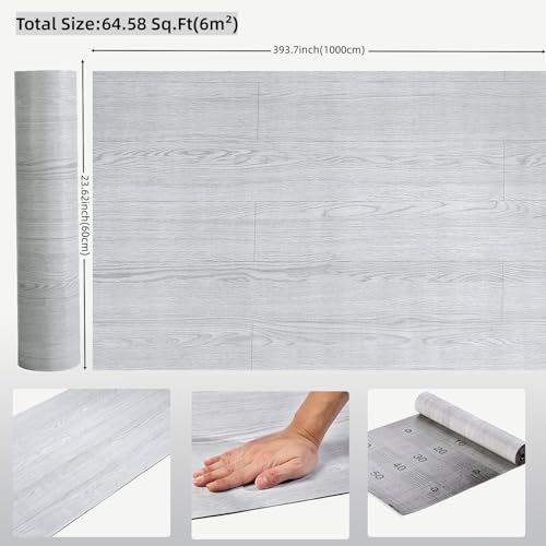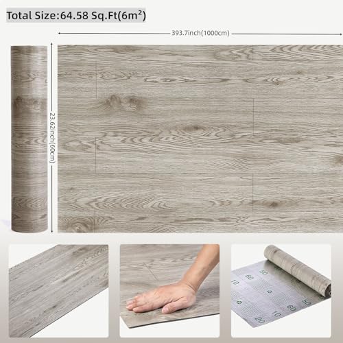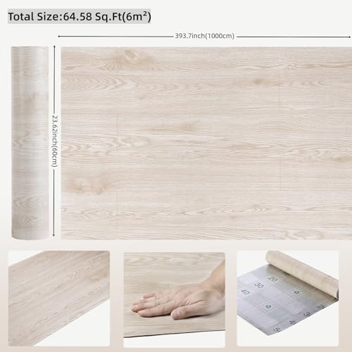 3D Peel and Stick Vinyl Floor Tile Roll Wood Plank Sticker 23"x 393"/64 Sq.Ft, for Home Apartment Room Self Adhesive Easy DIY Removable Waterproof Thicken Floor Covering Wood