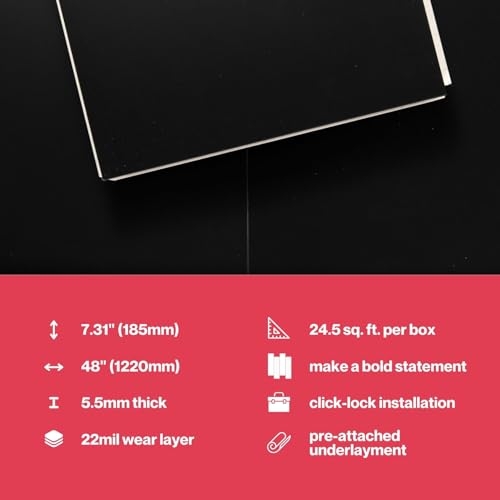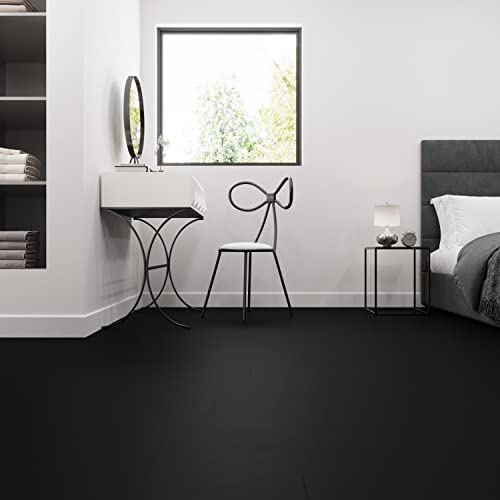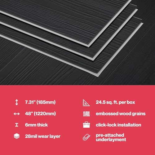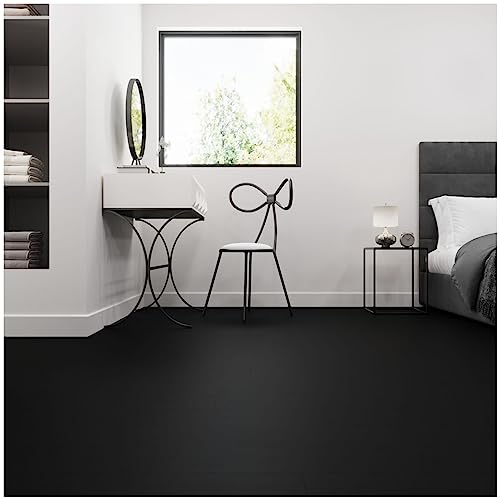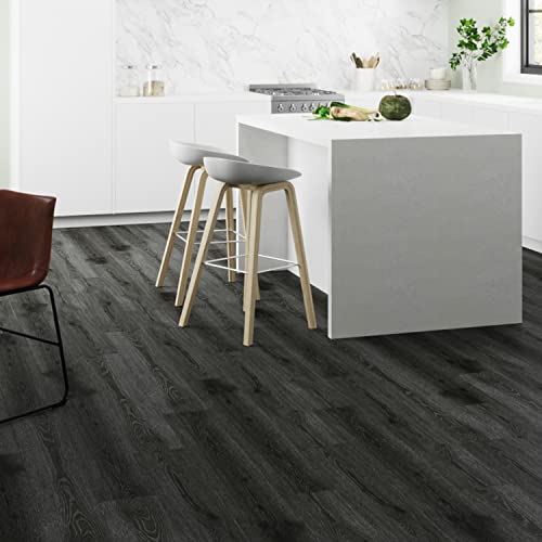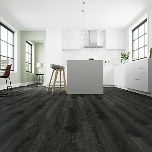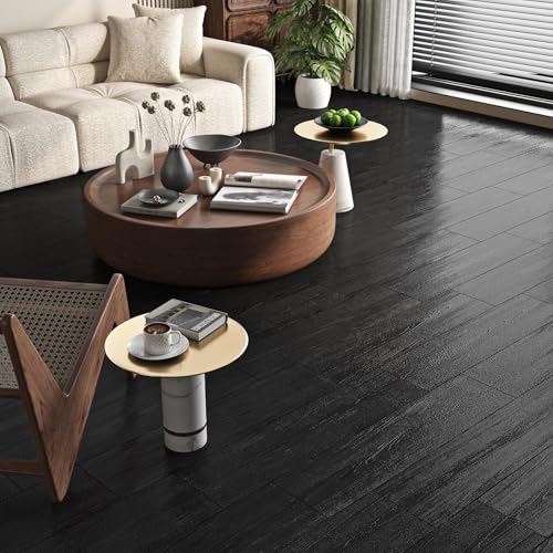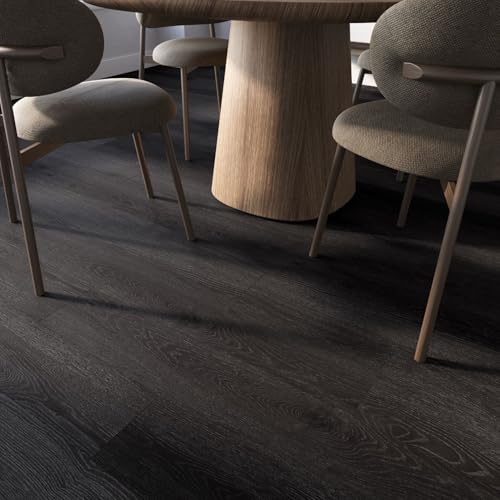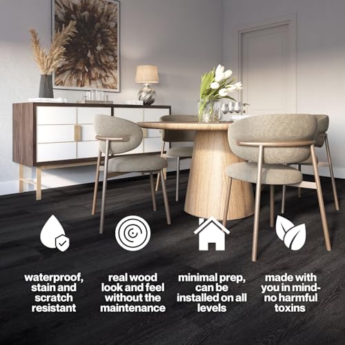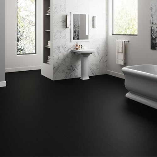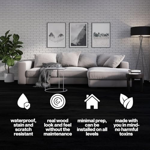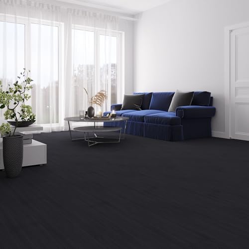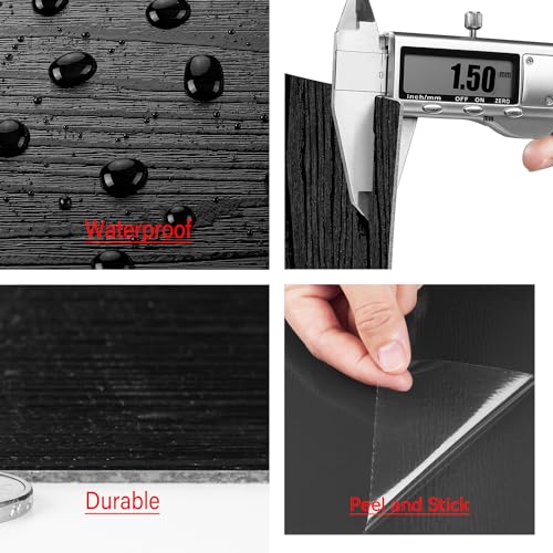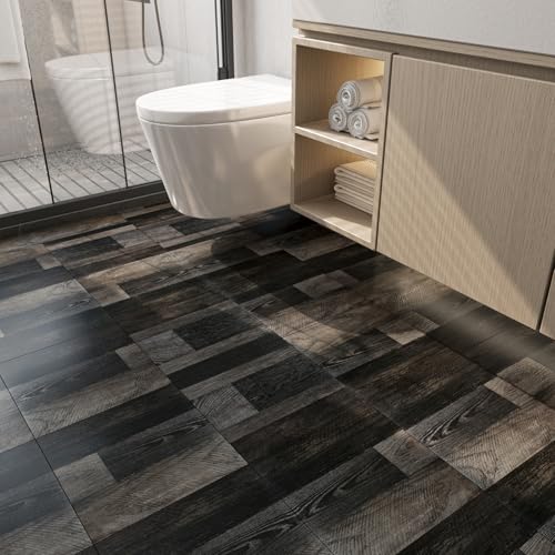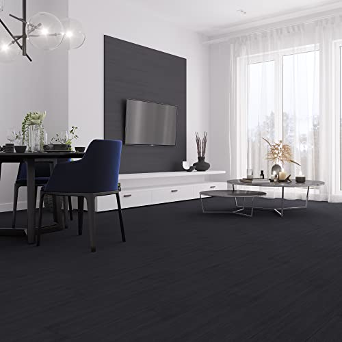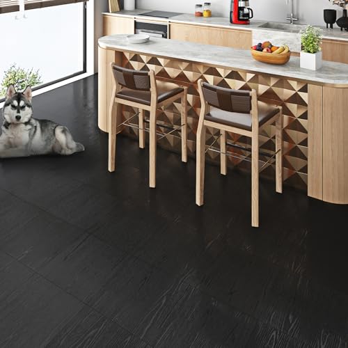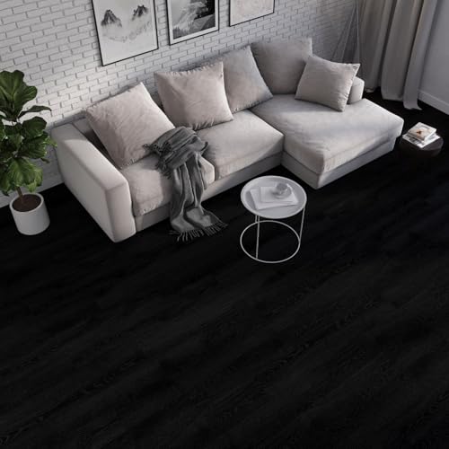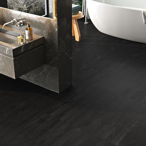 Livelynine Black Peel and Stick Floor Tile 18-Planks 6x36 Black Vinyl Flooring Planks Self Adhesive Kitchen Floor Tiles Waterproof Sticky Wood Laminate Flooring Luxury Vinyl Plank Flooring Bathroom