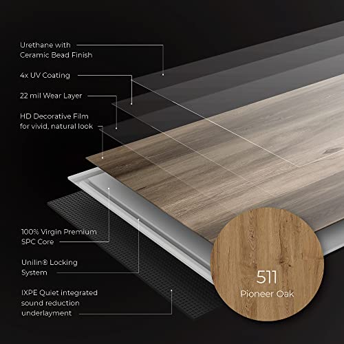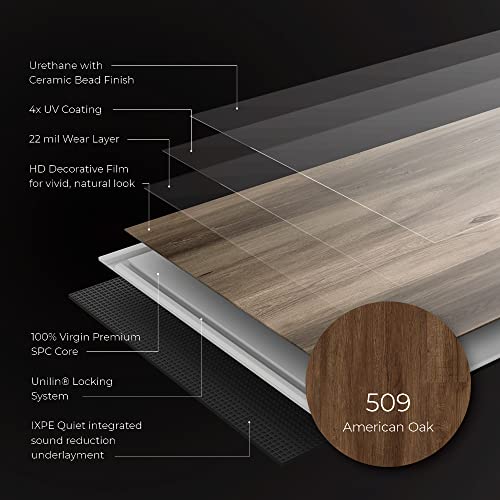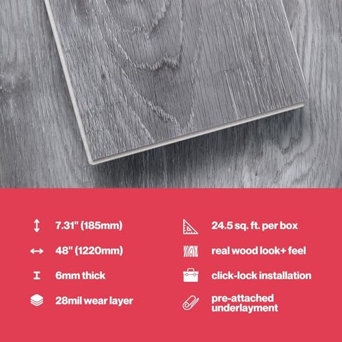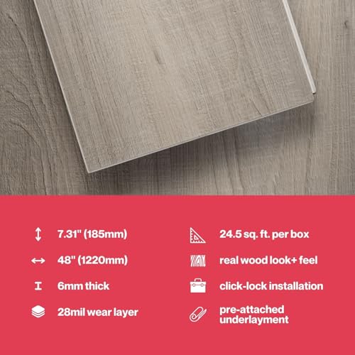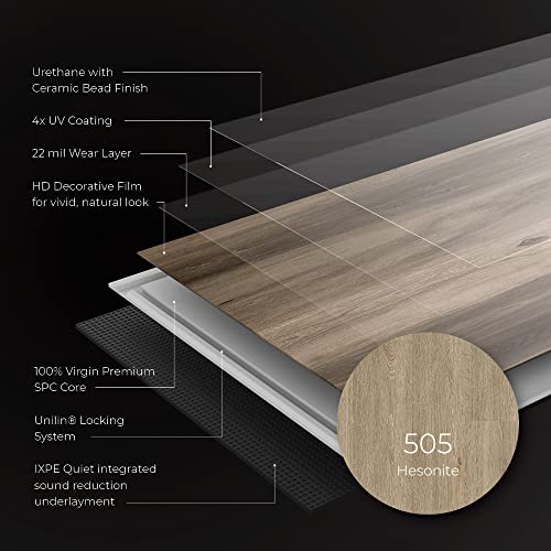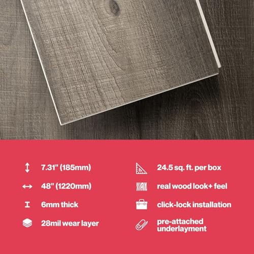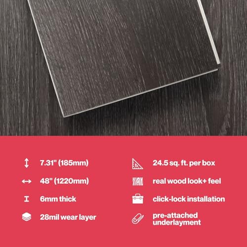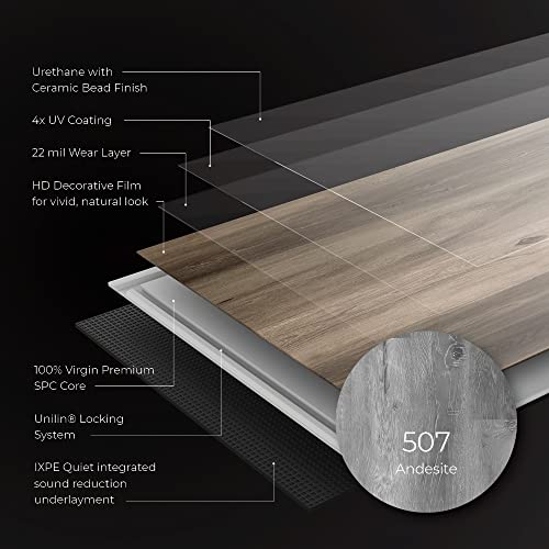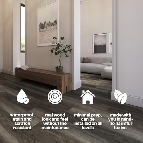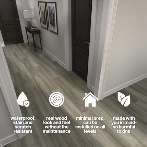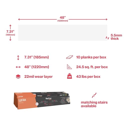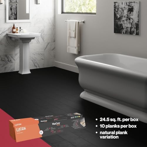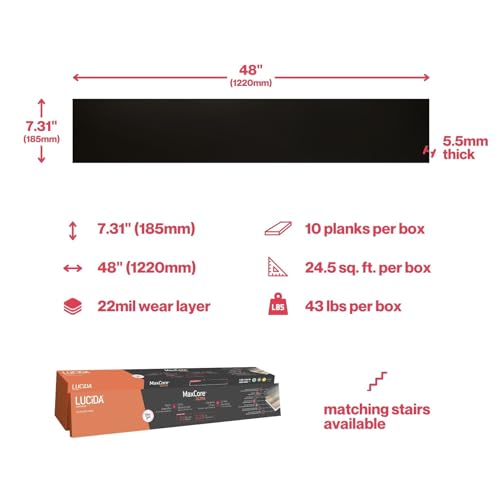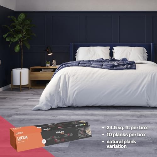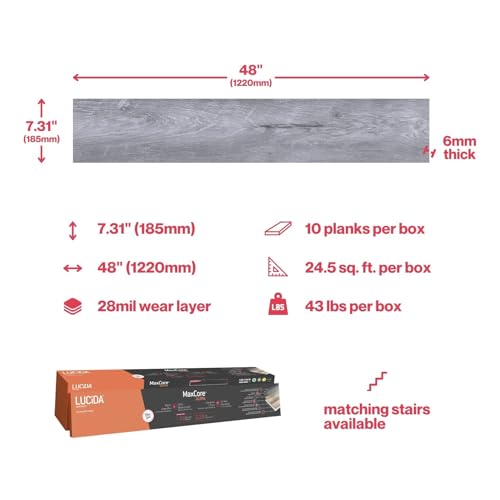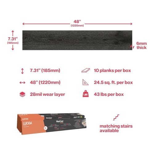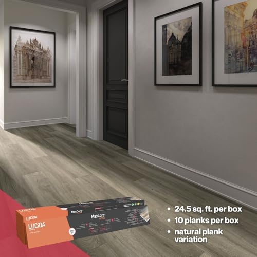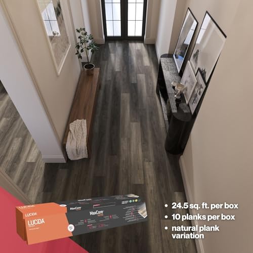 Lucida Surfaces Luxury Vinyl Flooring Tiles | Interlocking Flooring for DIY Installation | 10 Wood-Look Planks | MaxCore Ultra | 24.5 Sq. Feet (10 Planks, Andesite, 10)