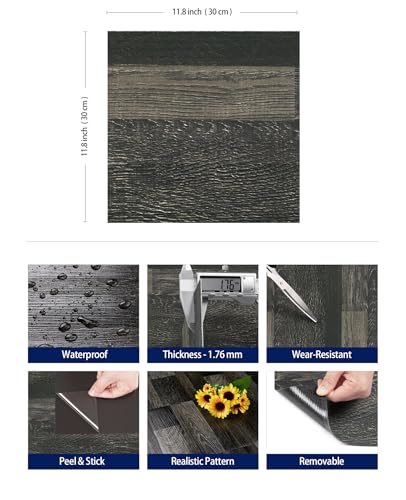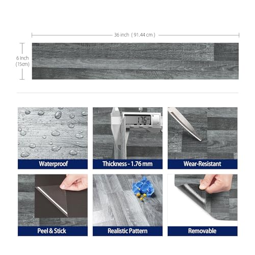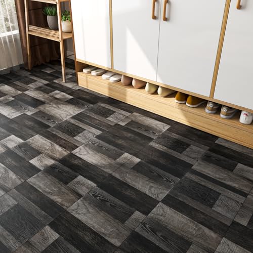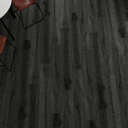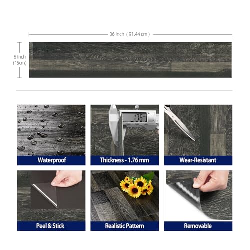 FunStick 6"x36" 35 Pcs Black Hard Wood Vinyl Flooring Planks Peel and Stick Floor Tile Waterproof Kitchen Vinyl Floor Tiles Peel and Stick on Tile Flooring for Bathroom Bedroom Sticky Laminate Sheets