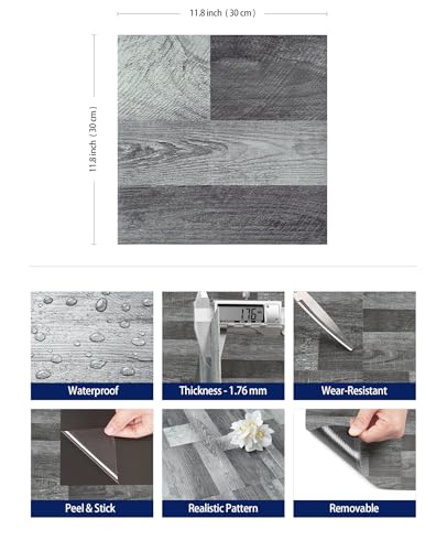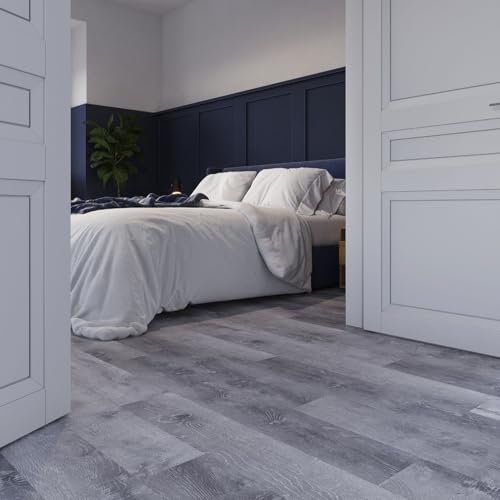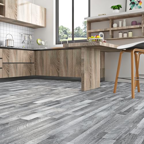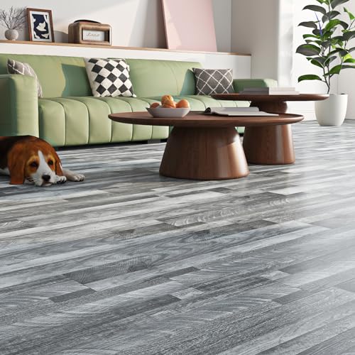 Livelynine Grey Peel and Stick Floor Tile 18-Pack 6x36 Reclaimed Wood Flooring Planks Bedroom Laminate Wood Plank Flooring Waterproof Self Adhesive Vinyl Floor Tiles Kitchen Rv Linoleum Flooring