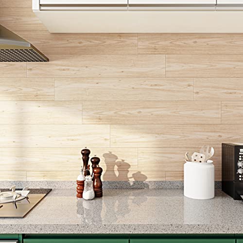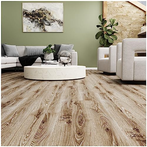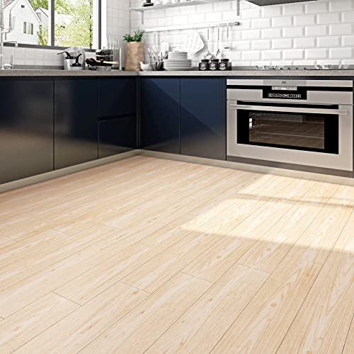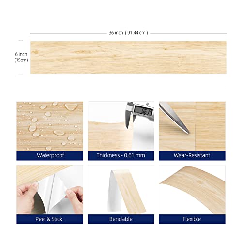 FunStick 6"x36" 15 Sheets Peel and Stick Floor Tile Waterproof Wood Vinyl Plank Flooring Peel and Stick on Flooring Tiles for Bathroom Bedroom RV Laminate Flooring Tiles Light Wood Planks for Walls