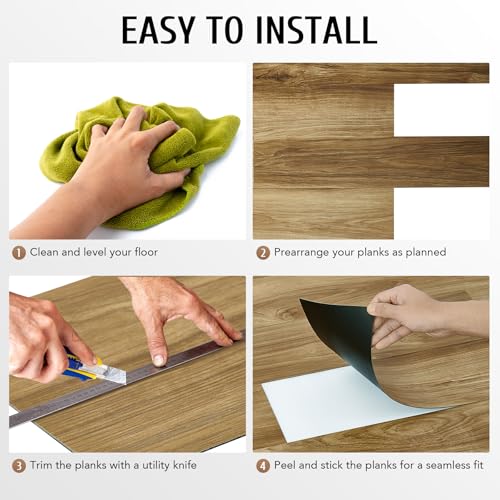 CO-Z Peel and Stick Floor Tile, Self Adhesive Vinyl Flooring 36x6 Inch, Waterproof Vinyl Tiles Removable Stickers for Living Room Bedroom Dining Room, 16-Pack 24 Sq. Feet, Light Oak