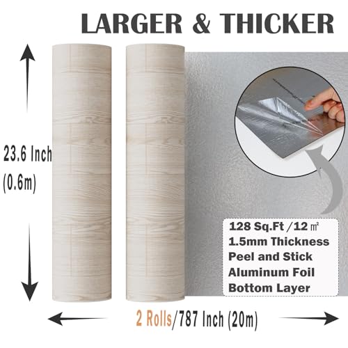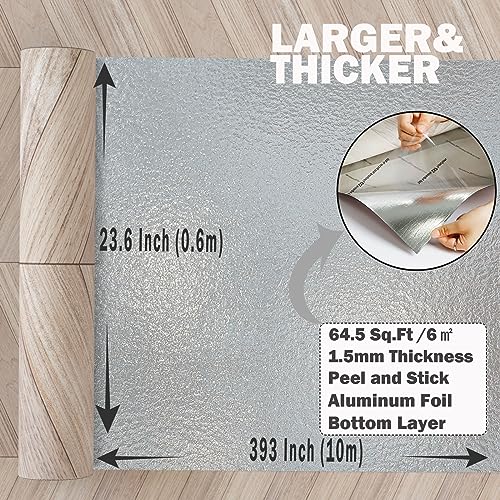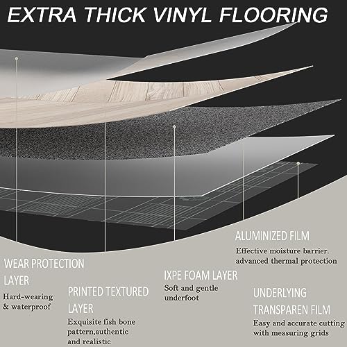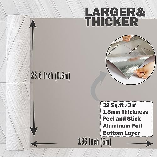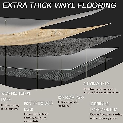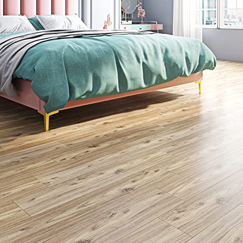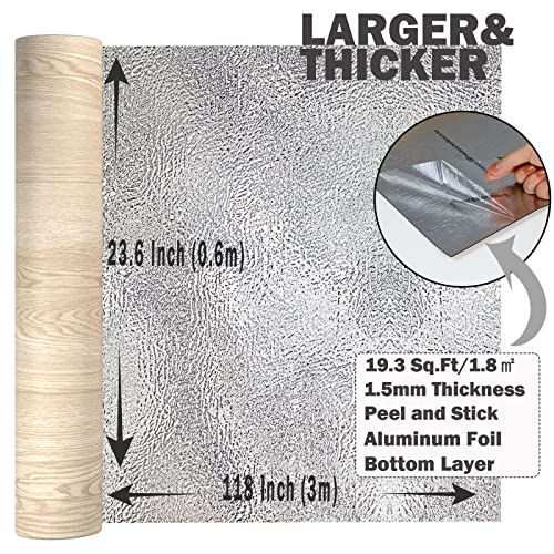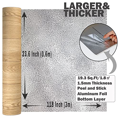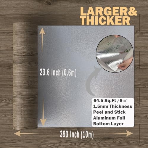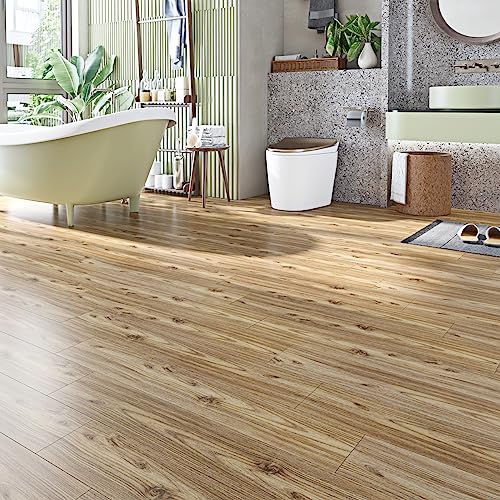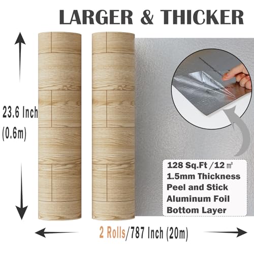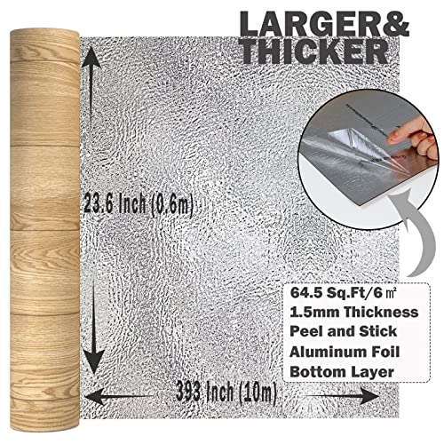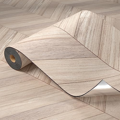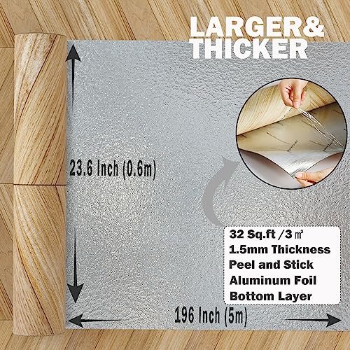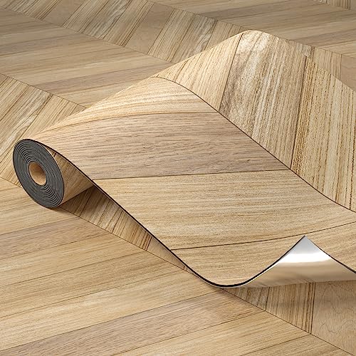 Oxdigi Peel and Stick Vinyl Flooring Roll 23"x 393"/64 Sq.Ft, Thicken Self Adhesive Vinyl Floor Tiles Wood Plank Flooring Waterproof Wear-Resistant for Any Room, Easy DIY Floor Coverings, Light Wood
