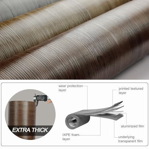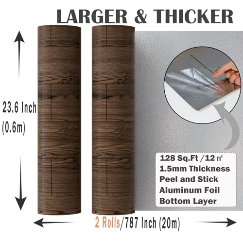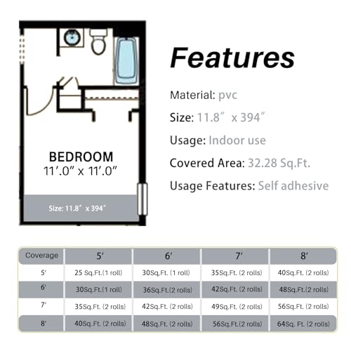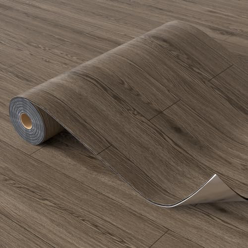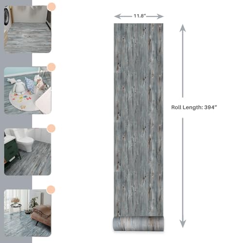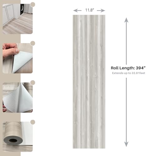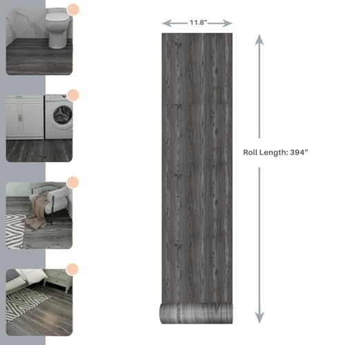 Peel and Stick Floor Tile - 11.8" X 394" Vinyl Flooring Roll, Wood Grain Textured with Waterproof, Slip-Resistant - for Bathroom, Rv