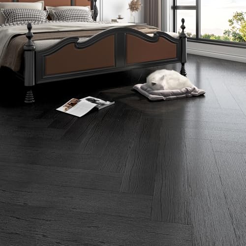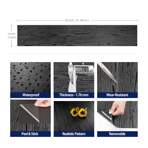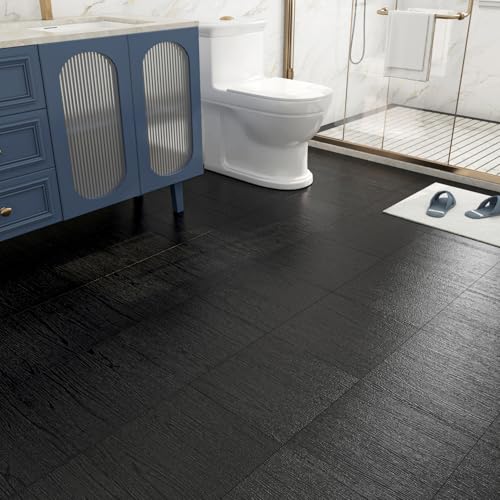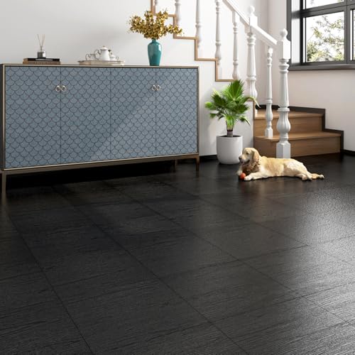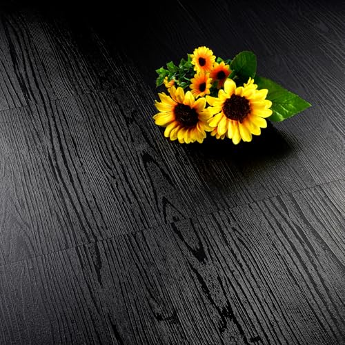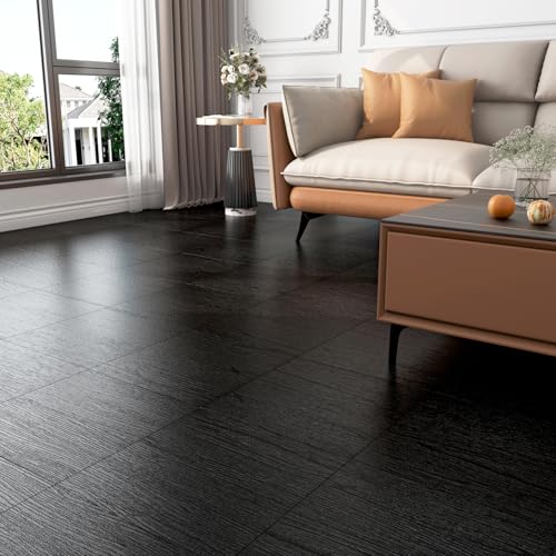 FunStick 17-Pack 6"x36" Peel and Stick Floor Tile Black Wood Luxury Vinyl Plank Flooring Waterproof Dark Wood Floor Tiles for Bathroom Kitchen Basement Laminate Vinyl Flooring Peel and Stick Tiles