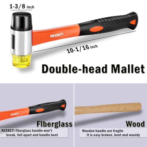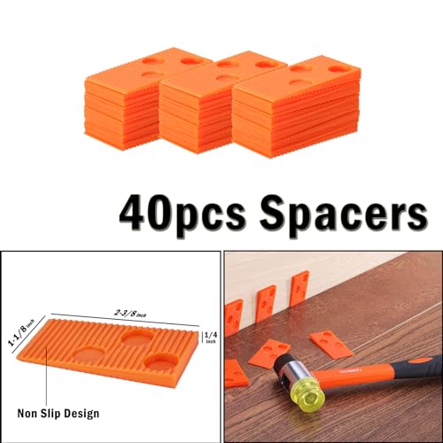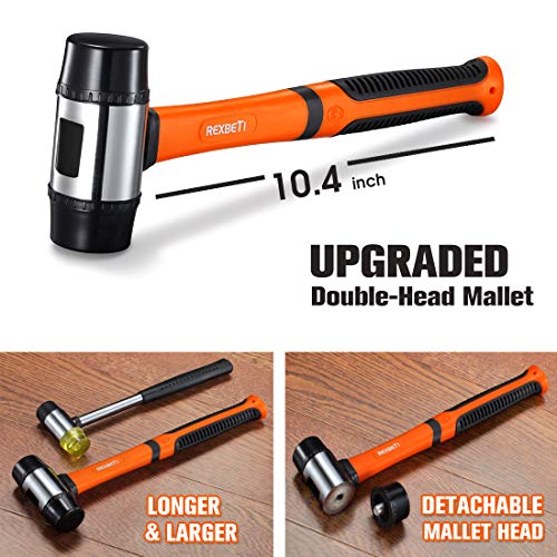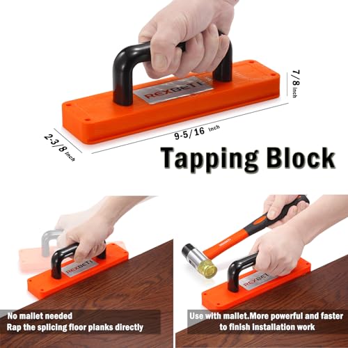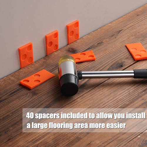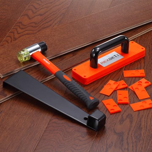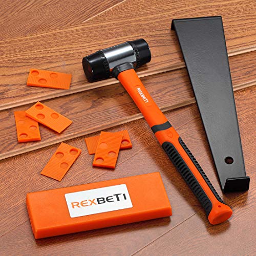 REXBETI 44-Piece Upgraded Laminate Wood Flooring Installation Kit with Solid Tapping Block, Long and Wider Pull Bar, Diameter 1 9/16" Reinforced Double-Faced Mallet, 10" Contour Gauge and 40 Spacers