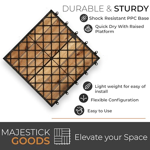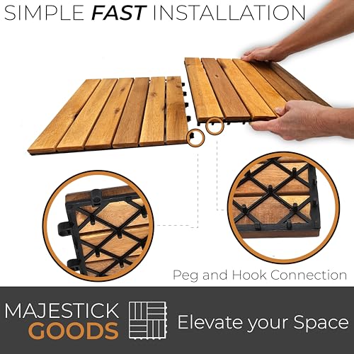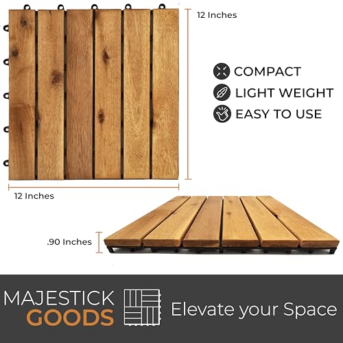 Interlocking Deck Tiles Snap Together Wood Flooring - 12 x 12 Acacia Hardwood Outdoor Flooring for Patio - Click Floor Decking Tile, Water Resistant Balcony Flooring, Wooden Parquet Flooring 24 Sq Ft