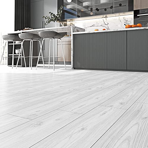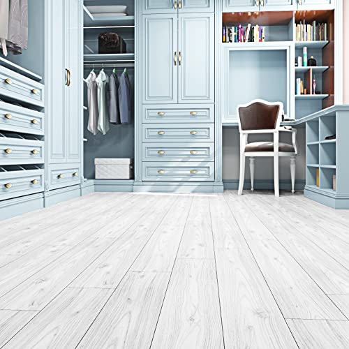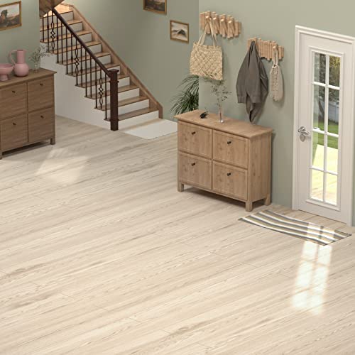 FunStick 6"x36" 15pcs Natural Wood Peel and Stick Floor Tile White Vinyl Plank Flooring Peel and Stick Wood Planks for Walls Waterproof Stick on Laminate Flooring Tiles for Bathroom Kitchen Bedroom RV