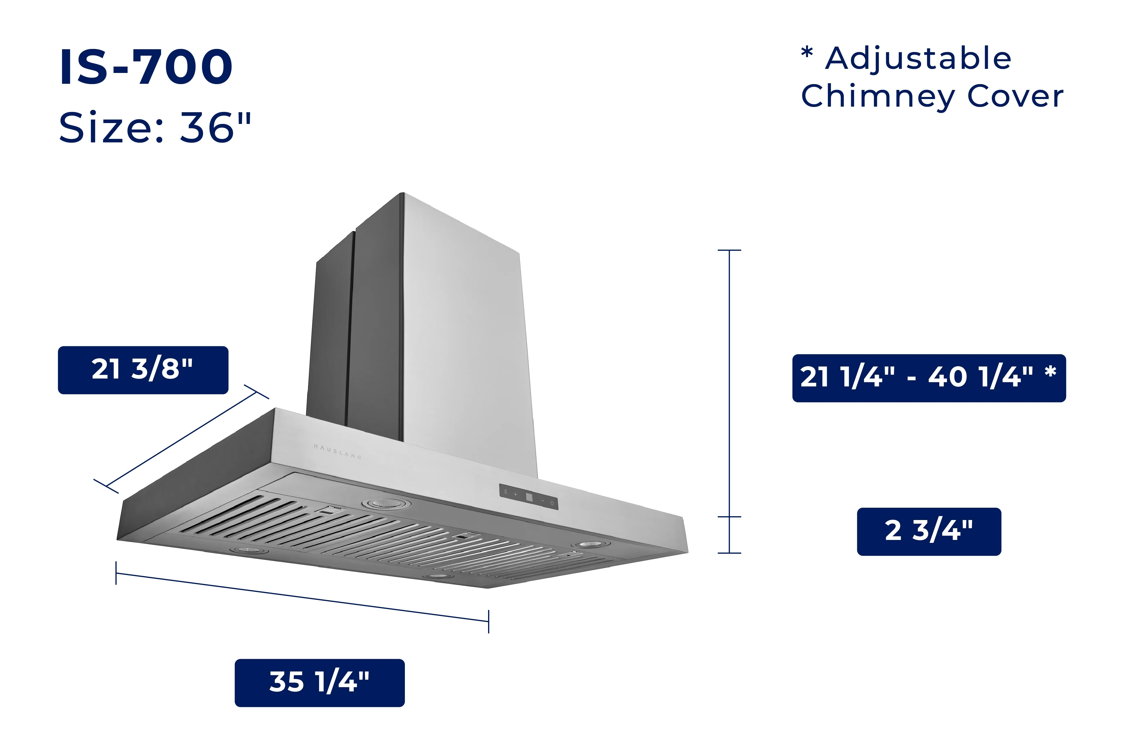 Hauslane | Chef Series IS-700 36" Modern Island Range Hood | Sleek Contemporary Canopy | Heavy Duty Suction Power, Dishwasher-Safe Baffle Filters | LED | Fits 6” Round Duct