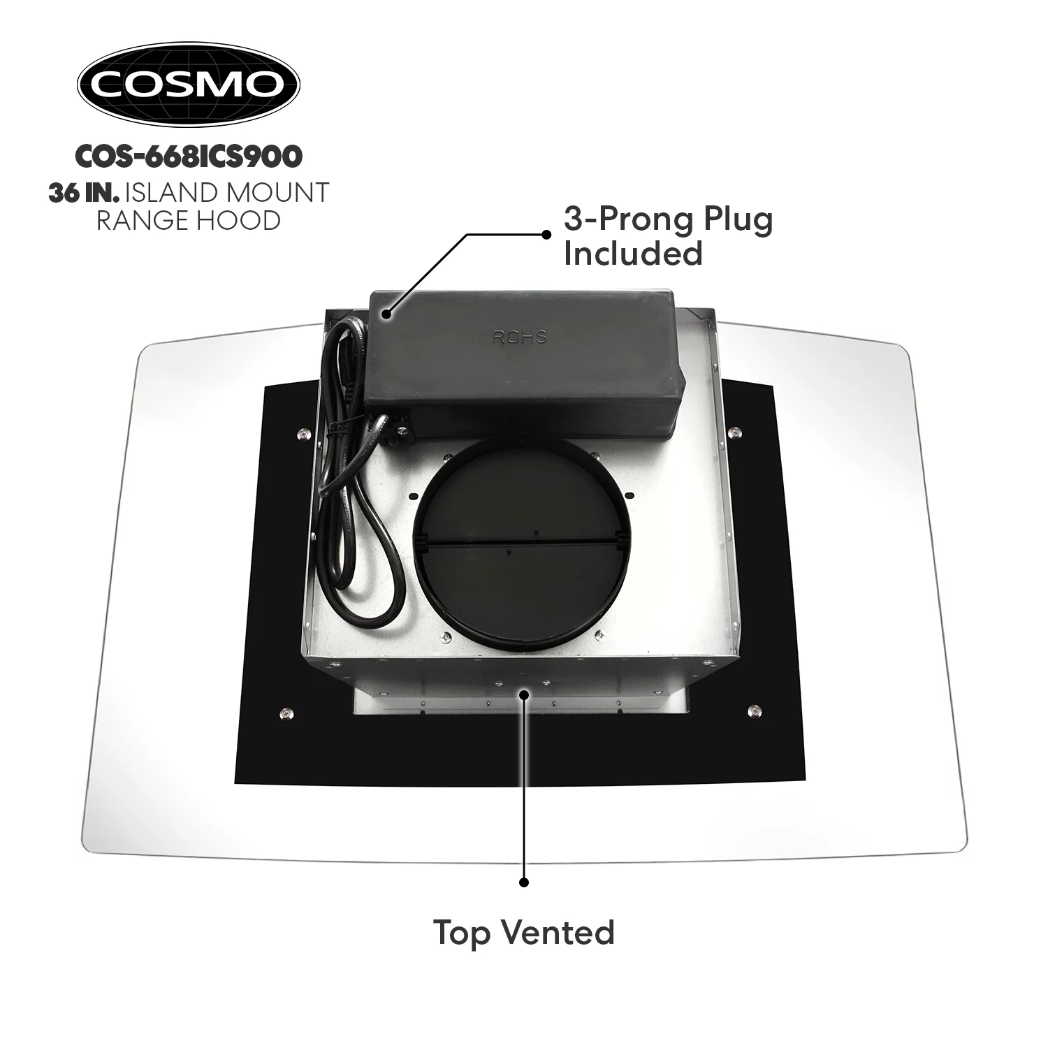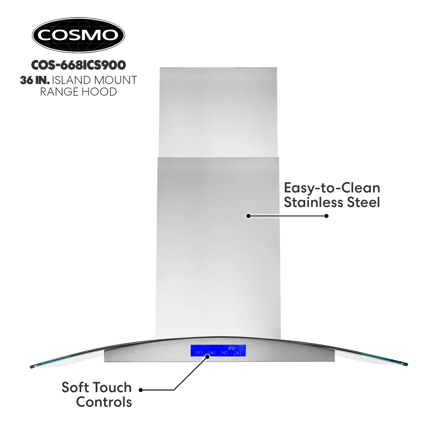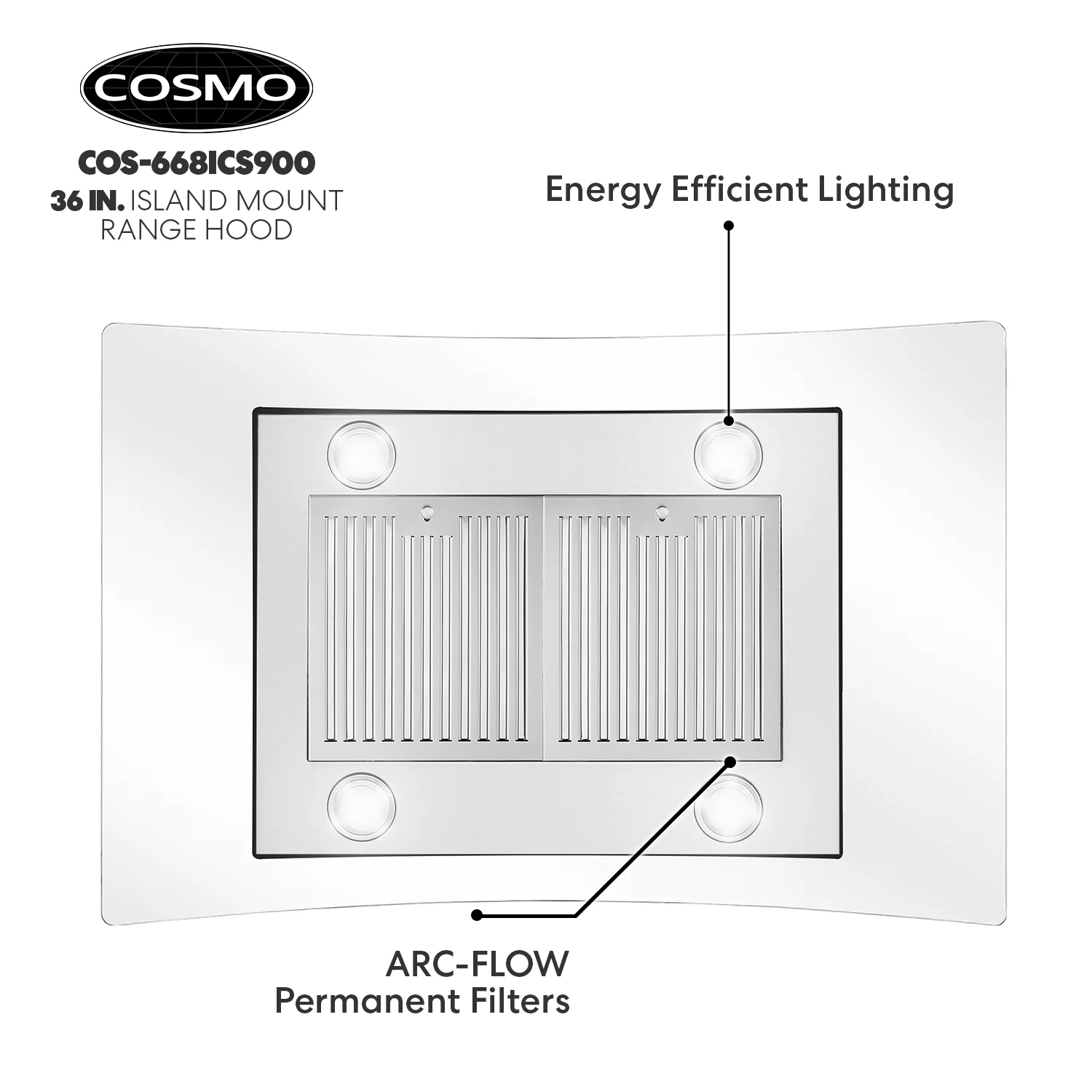 Cosmo 36 in. Ducted Island Range Hood in Stainless Steel with LED Lighting and Permanent Filters
