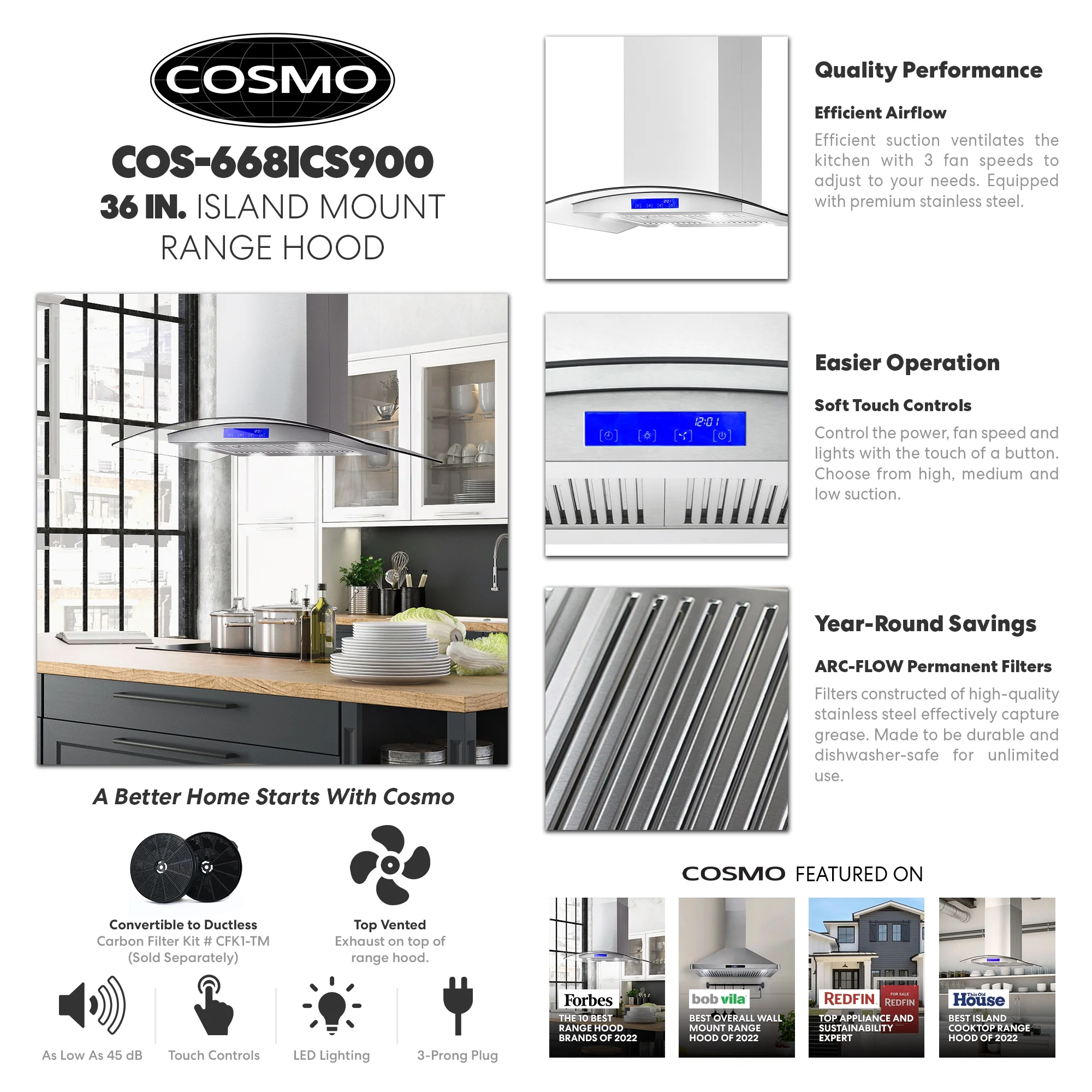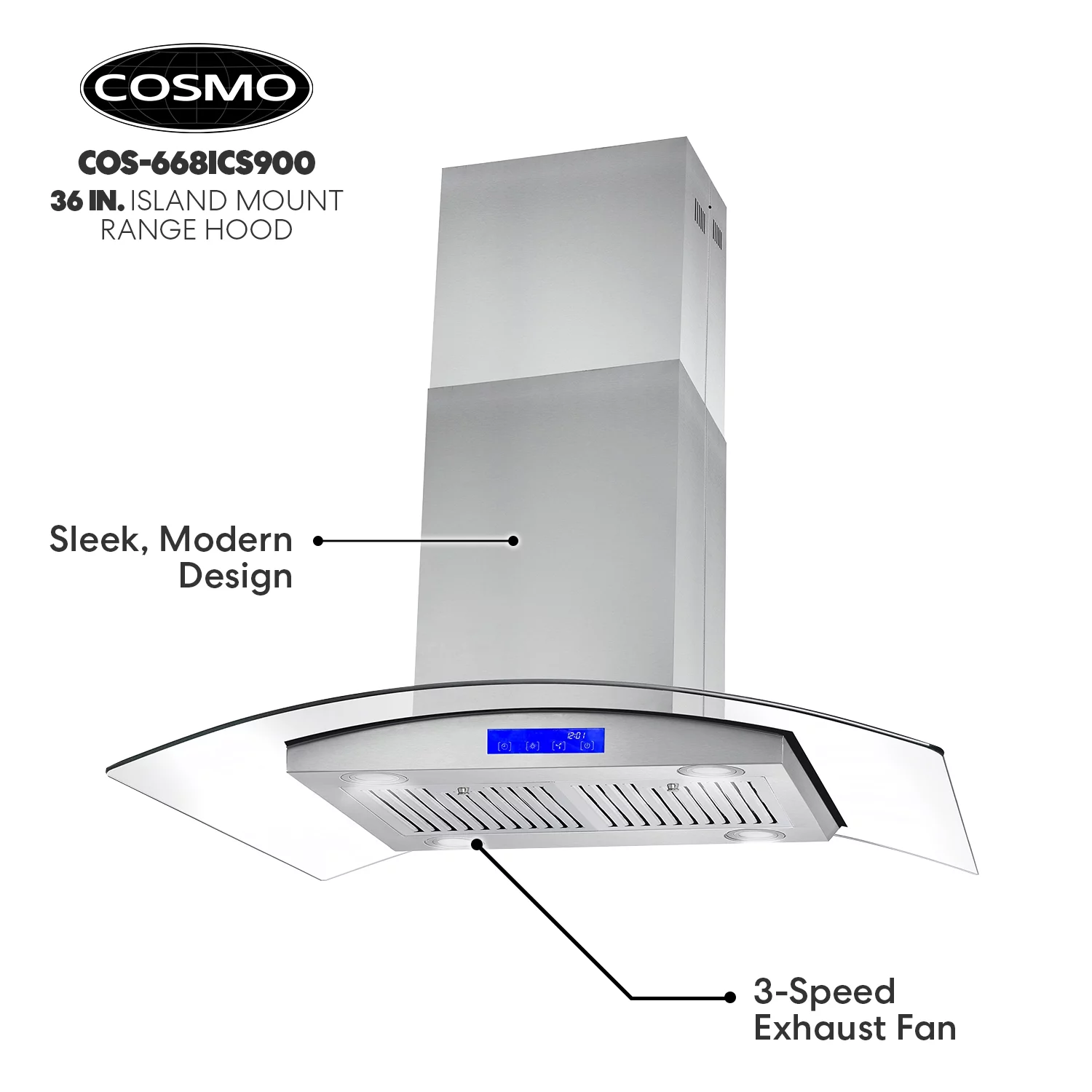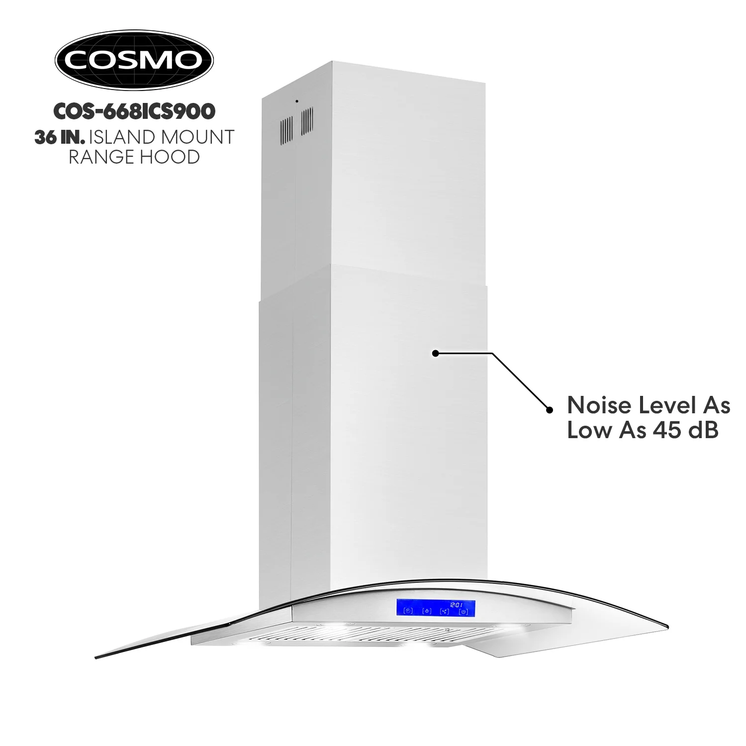 Cosmo 36 in. Ducted Island Range Hood in Stainless Steel with LED Lighting and Permanent Filters