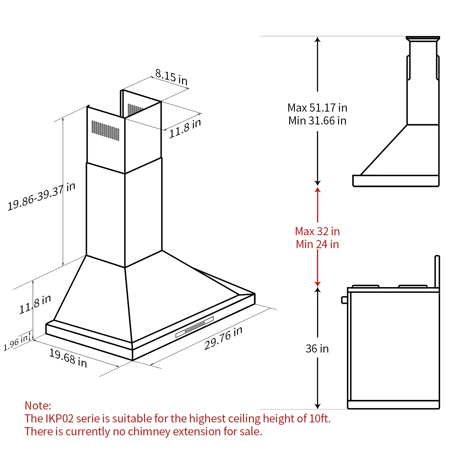 Blue Ocean 36" Stainless Steel Island Mount Kitchen Range Hood (RH02I)