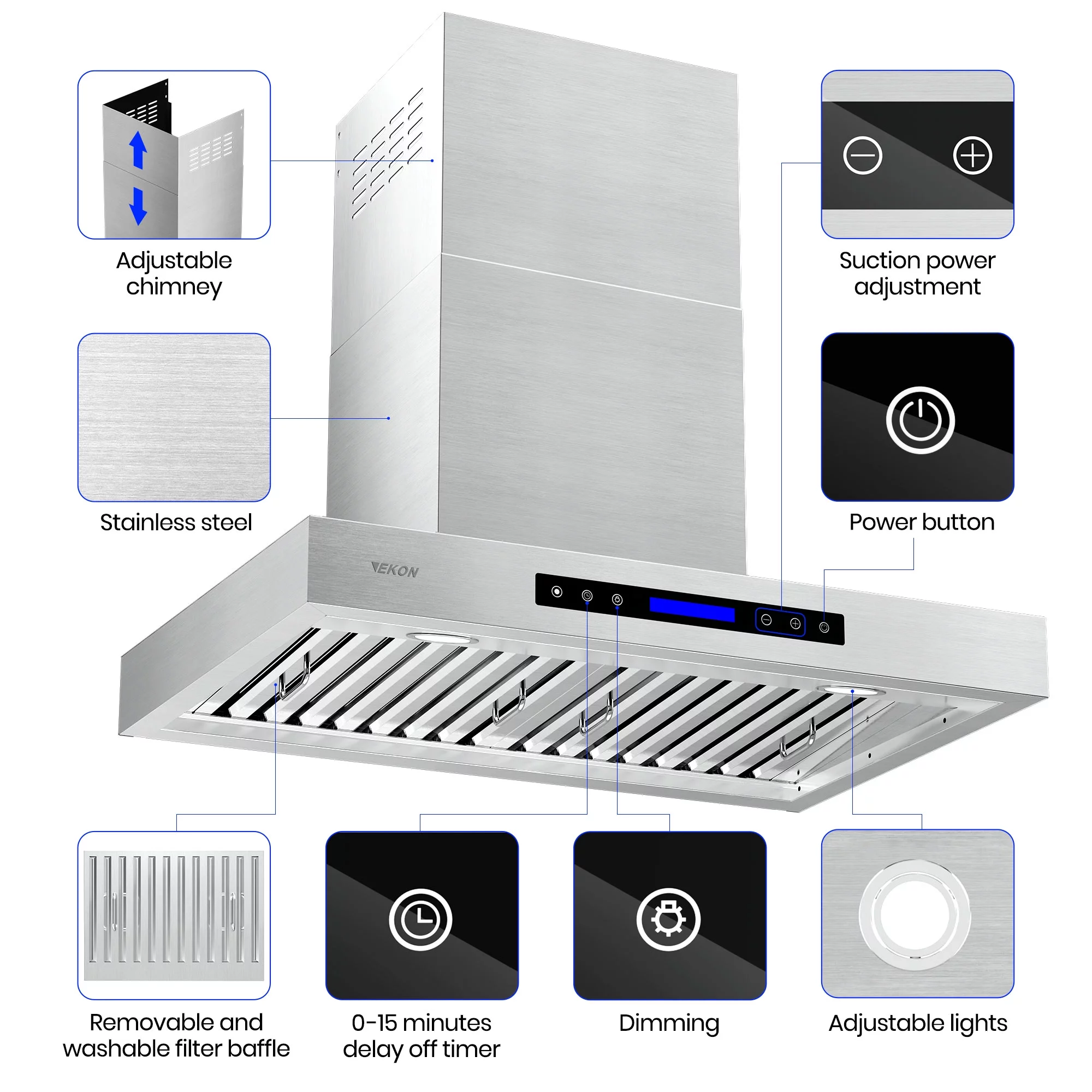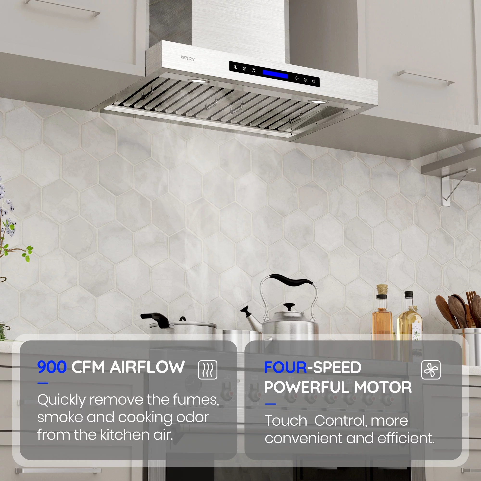 Tieasy 30 inch Stainless Steel Island Mount Range Hood 900 CFM Vent Hood - 30 inch
